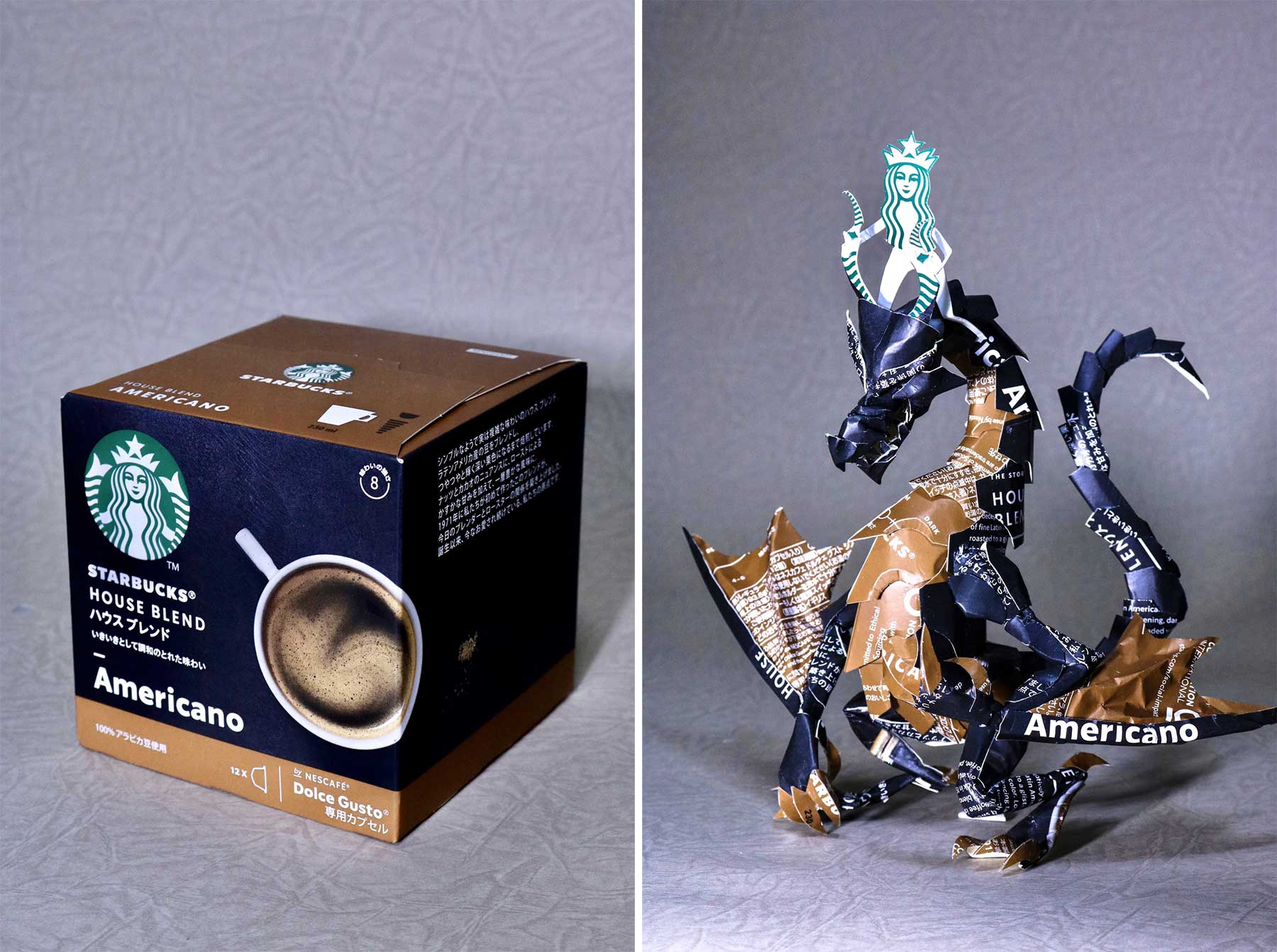 Weitere dieser originellen, kleinen Kunstwerke gibt es auf dem Instagram-Profil @kharukik97 sowie auf dem Twitter-Profil @02ESyRaez4VhR2l von Haruki zu sehen, der übrigens auch einen YouTube-Kanal besitzt. Dort bekommt man zu sehen, wie aus den Verpackungen Skulpturen gefertigt worden sind: