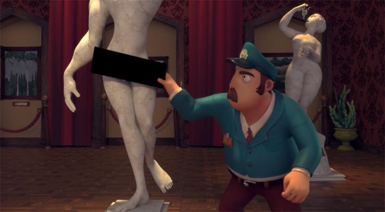 Ein einsamer Nachtwächter, eine zierliche Ninja-Nonne und jede Menge blanke Kunst. Zumindest, bis erste Zensur-Balken die klassischen Statuen verdecken. Ein sehr humorvoller animierter Kurzfilm von Anna Hinds Paddock, Isabela Littger de Pinho und Kriti Kaur, der vier Minuten eures Tages rettet.