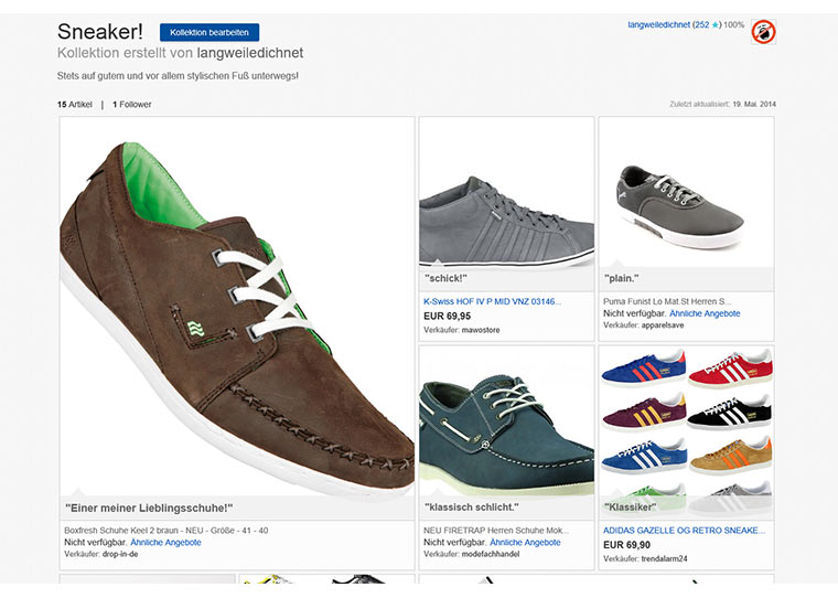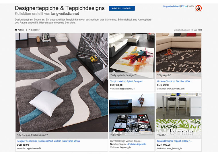 Mittlerweile wisst ihr ja, worum es hier geht. Ich stelle euch in regelmäßigen Abständen meine eBay-Kollektionen nach und nach vor. Kollektionen? Ja, die digitalen Artikelsammlungen, die man seit einigen Wochen bei eBay anlegen kann. So kann man wunderbar bei den Leuten thematisch stöbern, von denen man weiß/denkt, dass sie Geschmack haben.