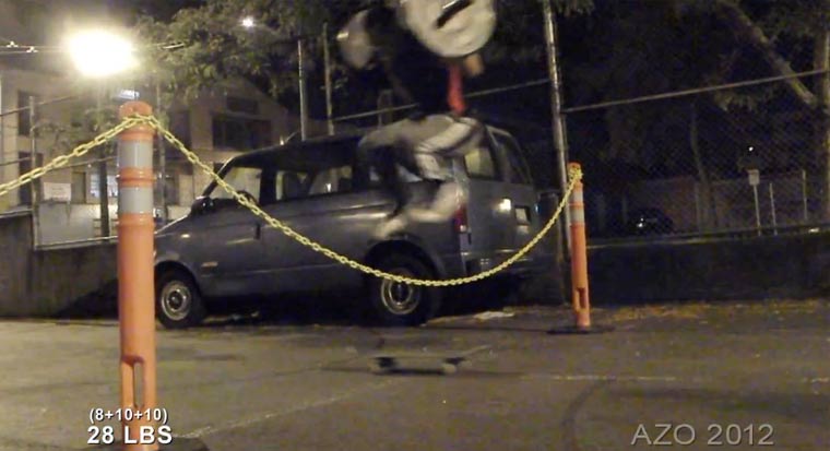 Vor einem Jahr hatte ich das tolle One-Man-Showreel von AZO hier. Dieses Jahr hat der vielseitig begabte Kunstturnverein im Körper eines kleinen Mannes erneut zugeschlagen. Von Parkour über Klettern bis hin zum Skateboarding ist alles dabei. Teilweise mit verbundenen Augen oder aberwitzig kombiniert. Wie bspw. mit einer Hantelstange auf dem Rücken und einem Skateboard über eine Absperrkette springen. Logisch…