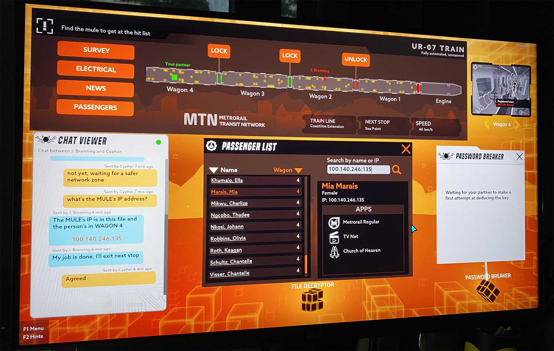 „In diesem kooperativen Spionageabenteuer braucht es zwei Leute, um die Welt zu retten. Tut euch als Agenten oder Hacker zusammen. Ihr seid nur auf sprachlicher Ebene miteinander verbunden. Arbeitet gemeinsam daran, eine globale Hi-Tech-Bedrohung zu besiegen.“