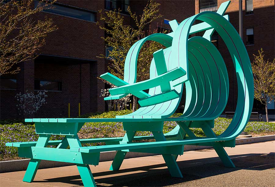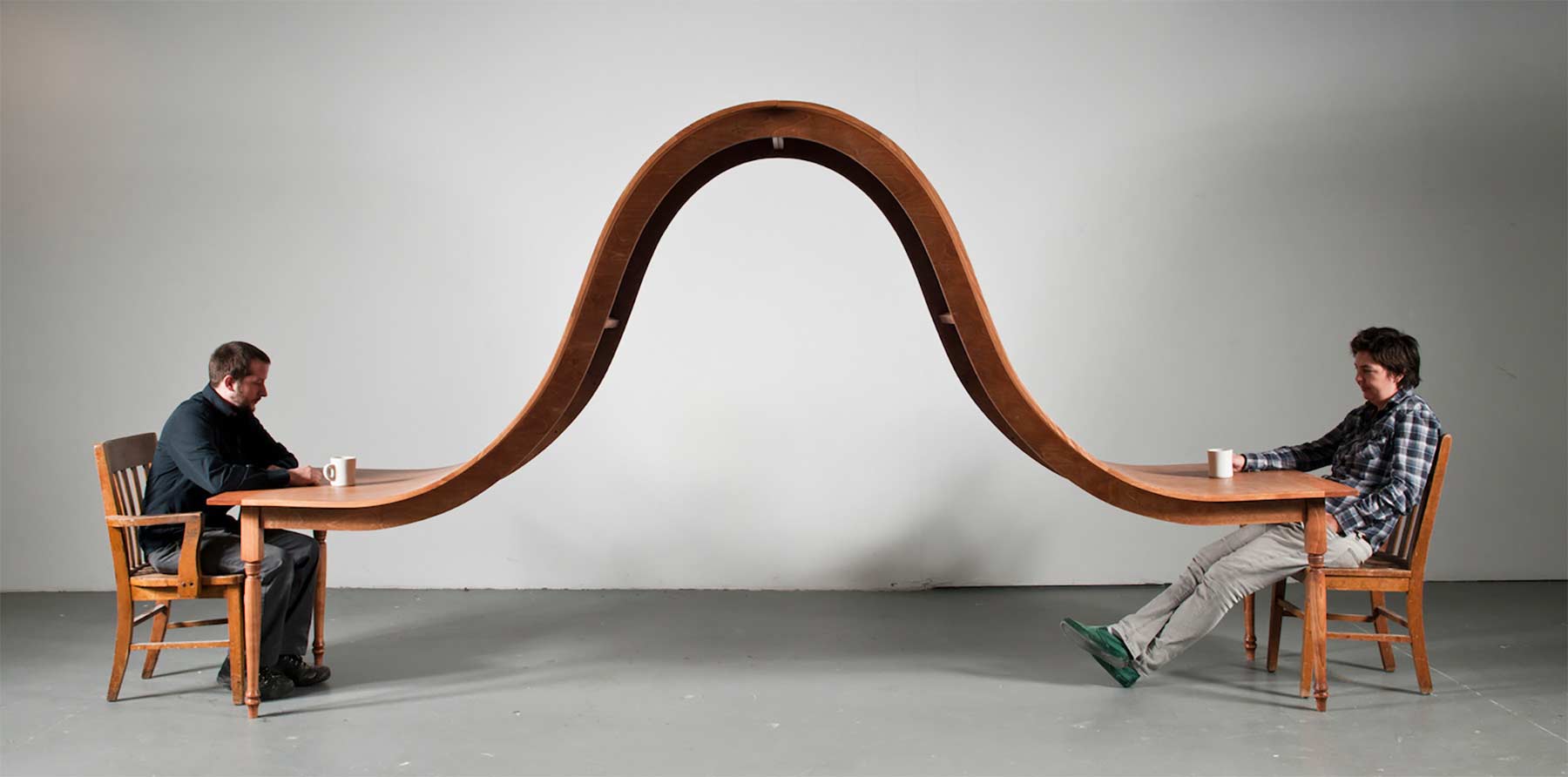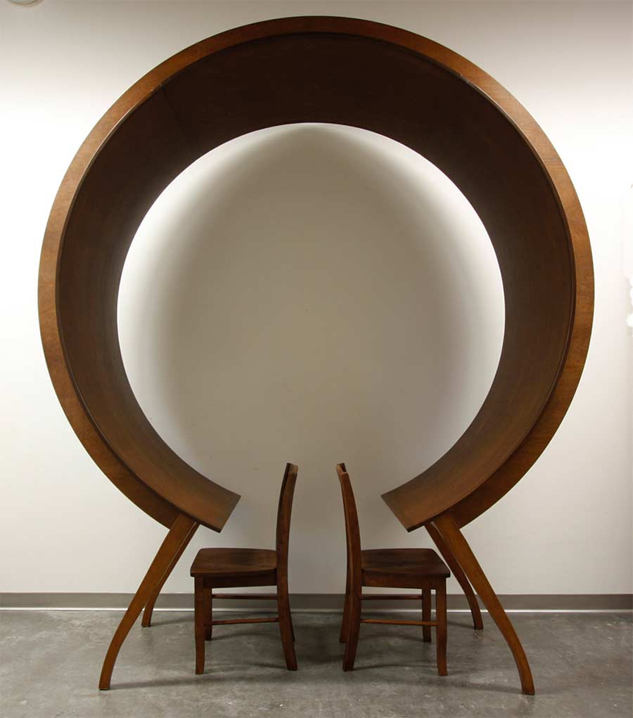 Aktuell lehrt Michael Beitz an der „University of Wisconsin“, dabei haben seine Werke es bereits bis zu Banksys „Dismaland“-Installation geschafft. Kein Wunder, schaffen seine Arbeiten den surrealen Spagat zwischen Sitzgelegenheit und Halluzination. Holz, das hart und dynamisch ist, dann weich und schlaff. Verdreht und gewölbte Oberflächen, die ein Sitzen nahezu unmöglich machen. Und dabei doch stets frische Ideen und andere Umsetzungsarten – hin und wieder hat ein Motiv auch den Weg in die Bilderparade gefunden, wenn ich mich nicht irre. Das ist tatsächlich mal Kunst, die sitzt!