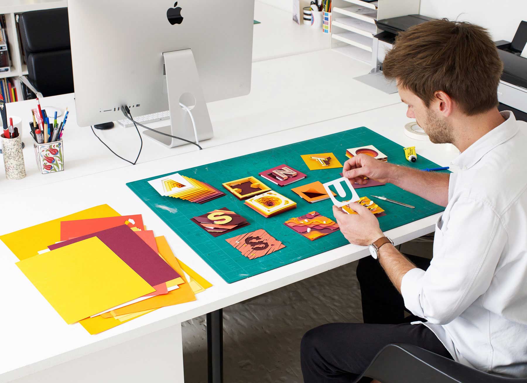 „Owen’s work often plays with light and shadow, combining hand-cut layers of paper with graphical forms and hand-rendered typography. His creations range from small-scale intricate paper illustrations that he shoots at his studio in East London, to large-scale sets and installations, for which he often collaborates with other creatives to help bring his ideas into being.“ (Artist Statement)