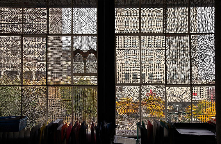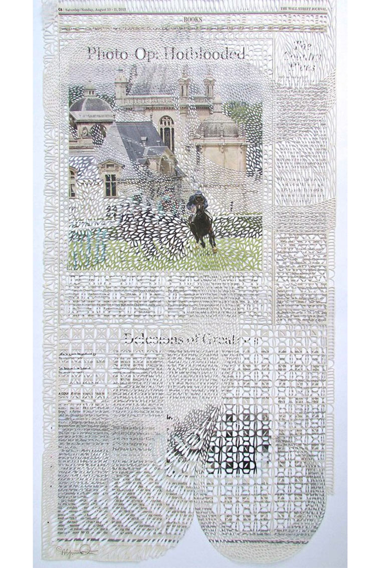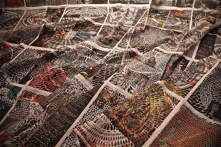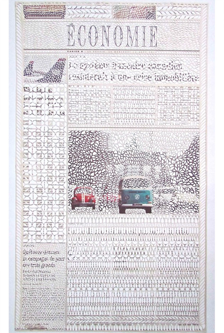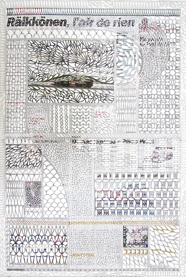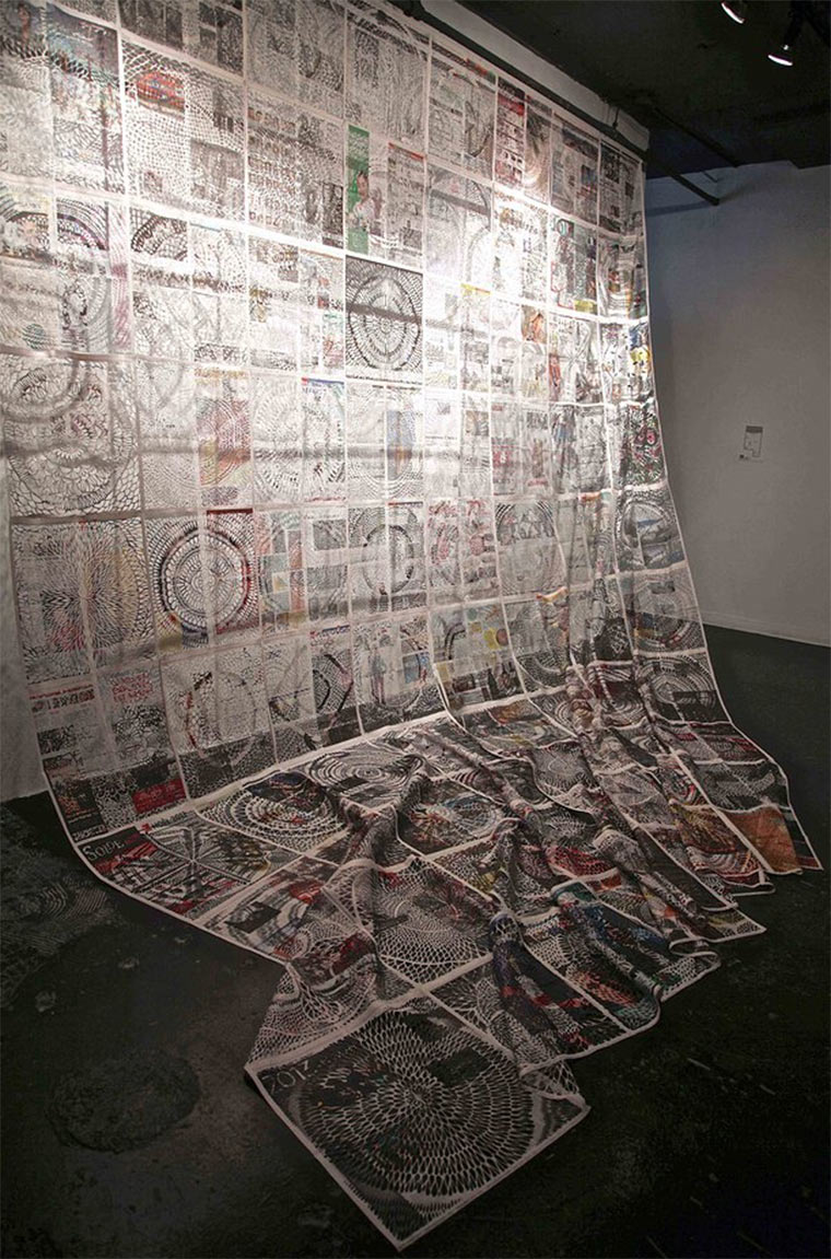 Ich bin ja seit Jahren der Meinung, dass Tageszeitungen aussterbend sind. Nur schön, dass Myriam Dion bereits einen neuen alternativen Verwendungszweck entdeckt hat. Die kanadische Künstlerin schnitzt kleinteilige Muster aus den Zeitungsblättern und nutzt sie als Gardinenersatz, Unterlage oder schöne Wanddeko. Und in der nächsten BILD-Sonderausgabe ist dann das Volksbastelskalpel…