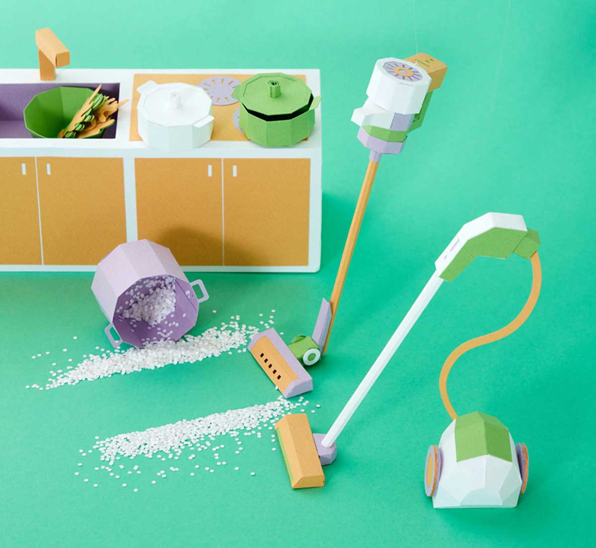 Vor zwei Jahren hatte ich mal diese tollen Retro-Kameras aus Papier hier im Blog, aber Lee Ji-Hee hat weitaus mehr drauf als nur papierne Technik. Mit der gelungenen Papier-Falt-Technik werden bei der koreanischen Künstlerin allerlei Alltagsgegenstände von der Pizza bis zum Bulli auf ästhetisch-kantige Art und Weise nachgebastelt. Hier eine kleine Auswahl: