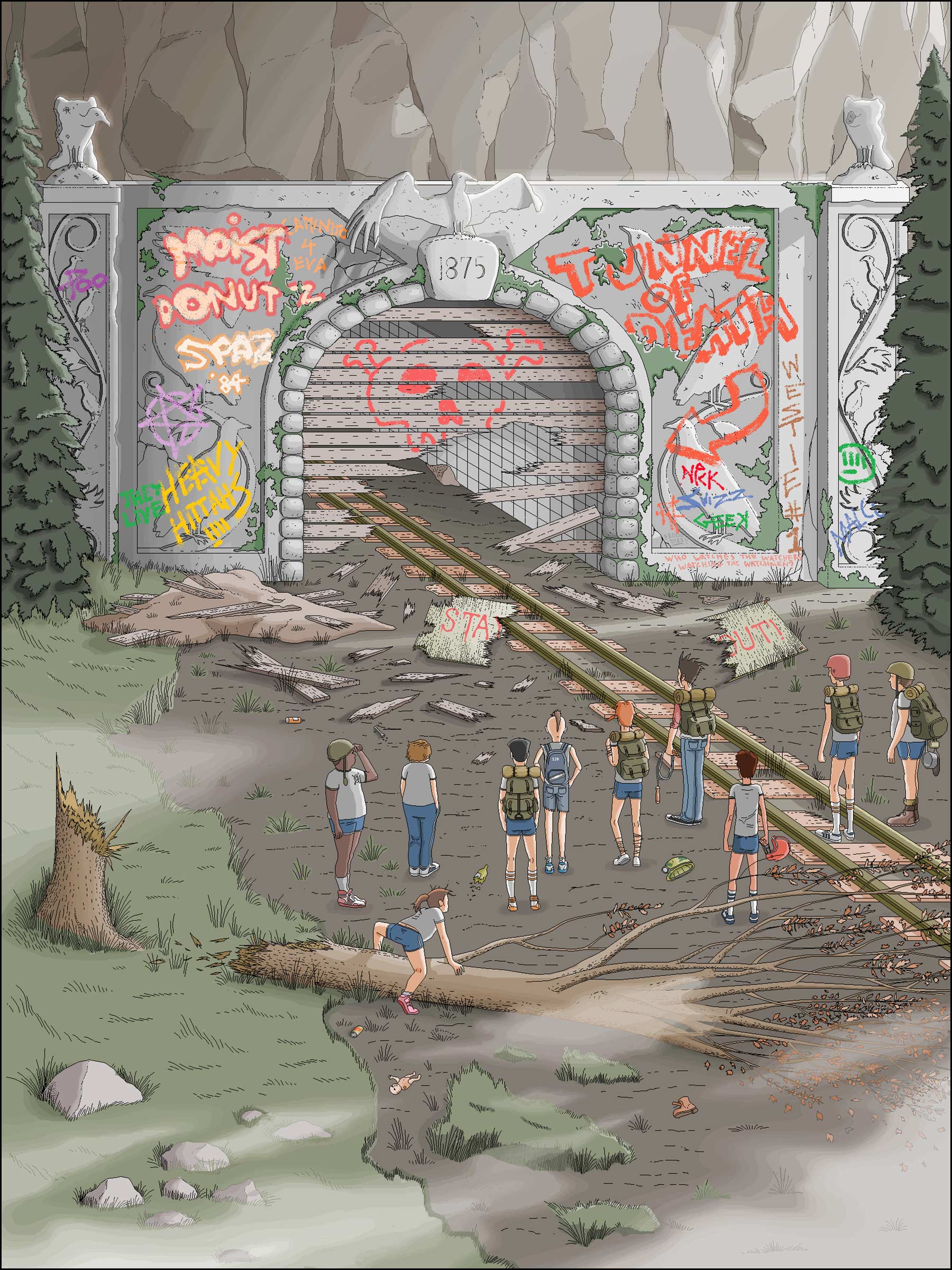 Ich weiß also in etwa, wie Pat Hines sich fühlt, wenn er seine Motive Stunde um Stunde und Pixel um Pixel im Uraltprogramm zusammen zimmert. Der Amerikaner hat jüngst sein Buch „Camp Redblood and The Essential Revenge“ (Partnerlink) mit seinen Bildern illustriert. Respekt für die Ausdauer!