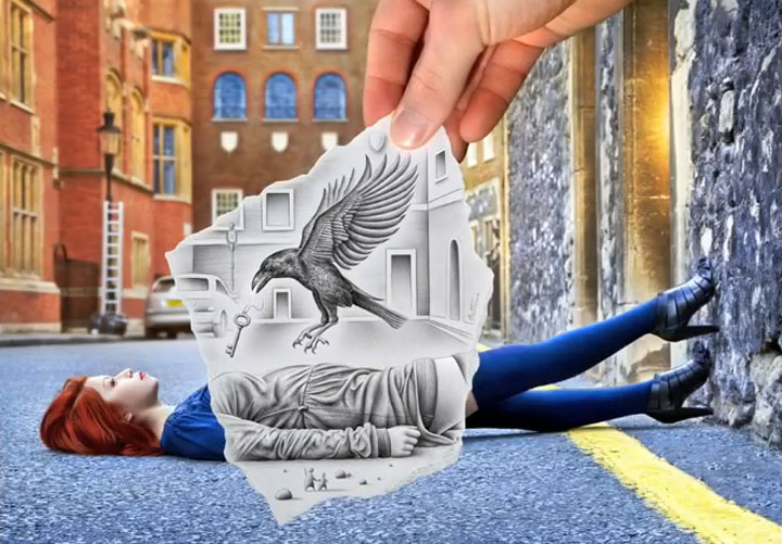 Die tollen Kombinationen aus Gezeichnetem und realer Fotografie von Ben Heine kennt ihr sicherlich alle. Jetzt hat der gute ein kleines Animations-Video seiner Pencil Vs. Camera-Reihe veröffentlicht, in dem er ein bisschen Einblick in die Entstehung gibt. Leider meiner Meinung nach nicht wirklich viel, bzw. da wäre weitaus mehr ( vor allem richtiger Video-Content!) möglich gewesen. Dennoch interessant zu sehen, wie sich die Bilder nach und nach zusammen setzen und letztlich in das Foto integriert werden. Ein bisschen minimalistische Animation gibt es auch noch oben drauf…