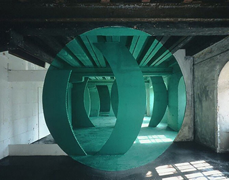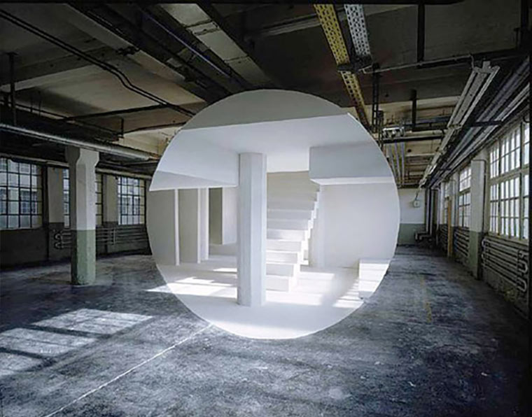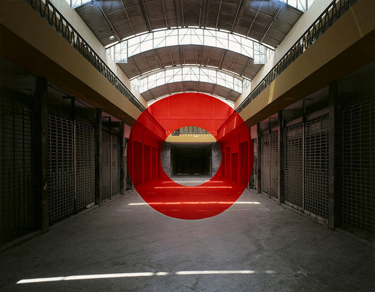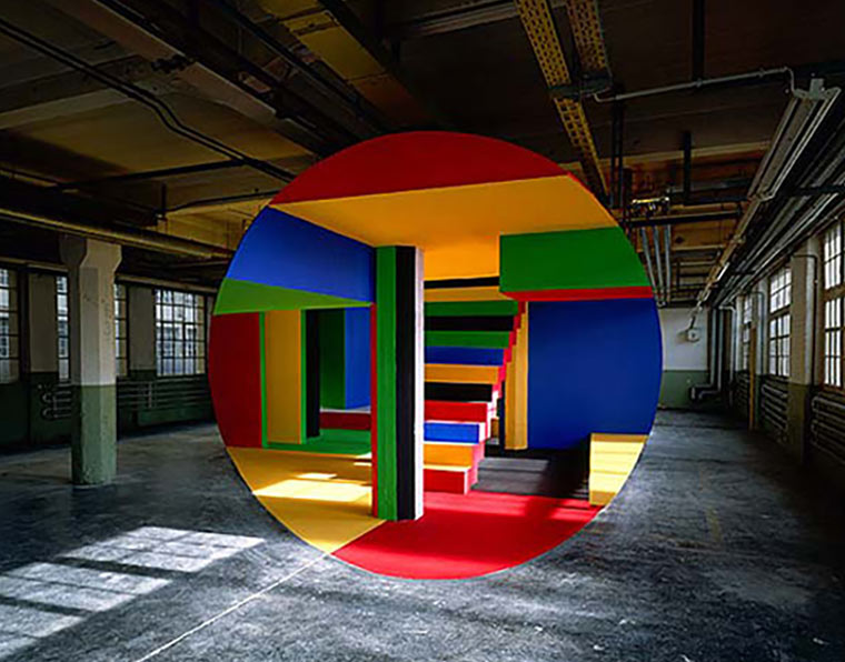 Ich hatte schon ein paar Mal Gemälde hier, die sich über Mauern, Decken und Dinge erstreckten und ein scheinbar drüber gelegtes Farbmotiv ergaben. Aber eben nur aus einer Perspektive. Bereits seit den 80er Jahren erstellt Künstler Georges Rousse solche „Single-Perspective Installations“. Aber nicht nur mit Farbe, er spielt auch mit Belägen, Stoffen und Umbauten. Oftmals in verlassenen und zu renovierenden Gebäuden, die er so kurz vor dem Ende noch einmal verschönert. Zumindest an einer Stelle und aus einer anderen Stelle aus betrachtet.
