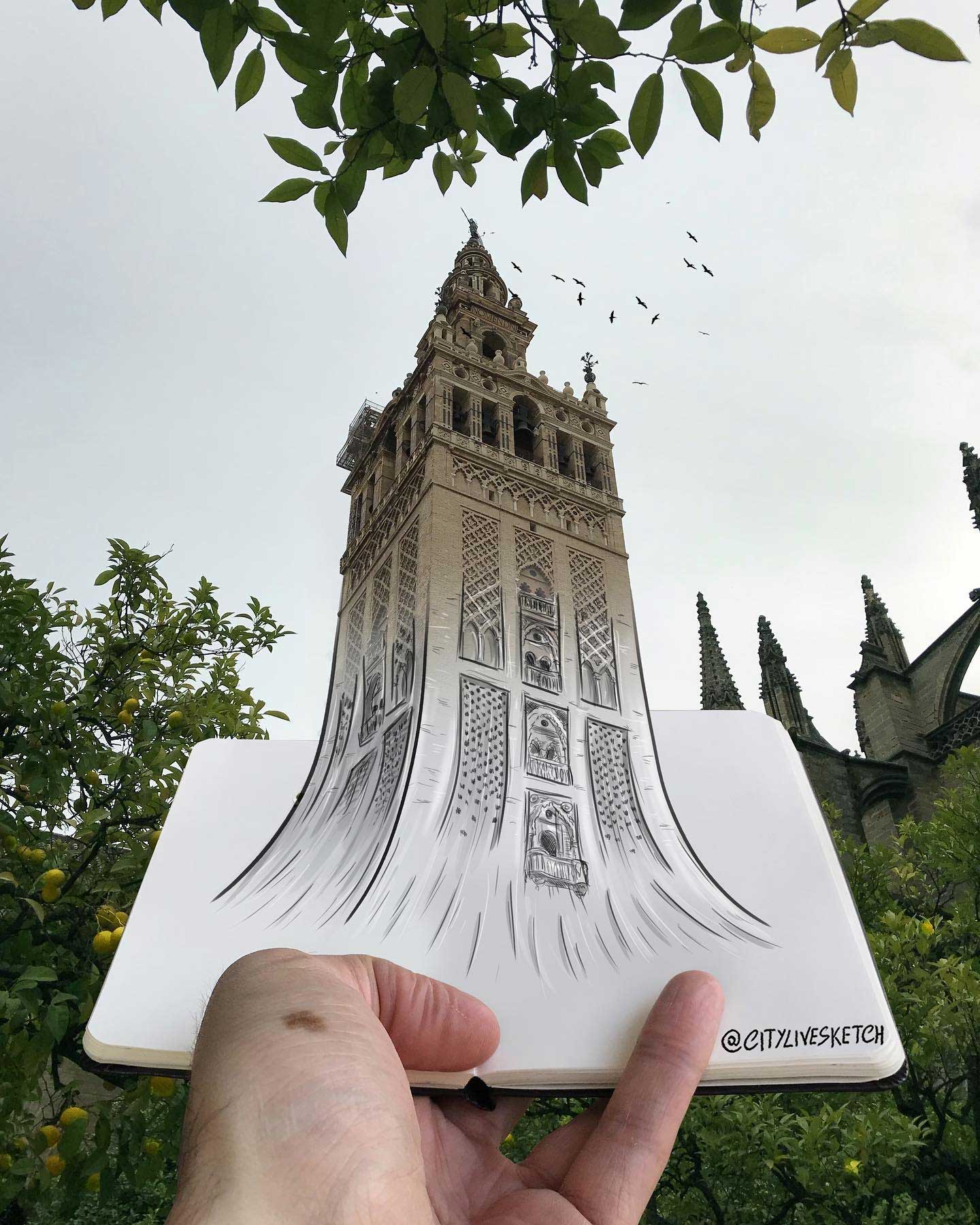 „The aim of CityLiveSketch is to showcase the beautiful world surrounding us, both the iconic places and the most characteristic views, using not only simple photos but also drawings made on a normal travel sketchbook.“ (Artist Statement)