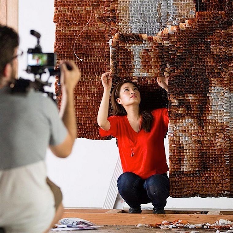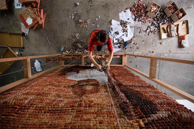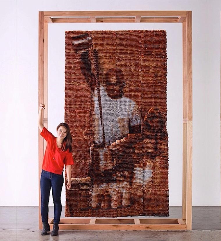 Dass die Künstlerin Hong Yi aka RED kreativ ist, wissen wir bereits durch ihre Essensgemälde. Und auch mit Kaffeeringen war die Malaysiarin bereits aktiv. Auf die Frage „Und was ist mit Tee?“ antwortet sie dann einfach mal mit einem Portrait aus 20.000 Teebeuteln, gekonnt nach Farbnote angeordnet. Etwa zwei Monate hat sie für die Vorbereitung für ihren Teh Tarik Man gebraucht. Die Künstlerin selbst scheint unzufrieden, gibt sich nur einen Daumen runter. Ich finde es beeindrucken!