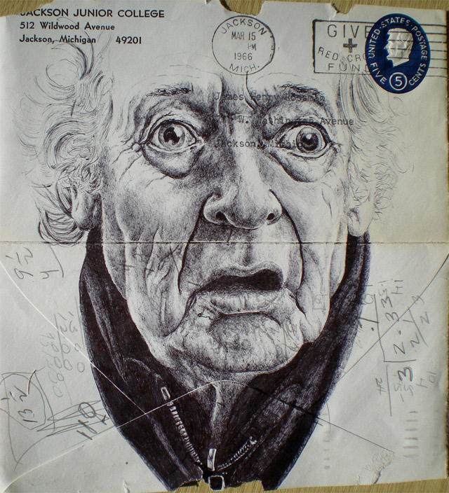 Schöne Arbeiten von Mark Powell, der Zeichnungen auf Briefumschlägen erstellt. Und wer weiß, wie nervig Dinge unter einem Blatt Papier werden können, wenn man beim Zeichnen auf eine Kante trifft, der weiß, wie undankbar Briefumschläge sein dürften.