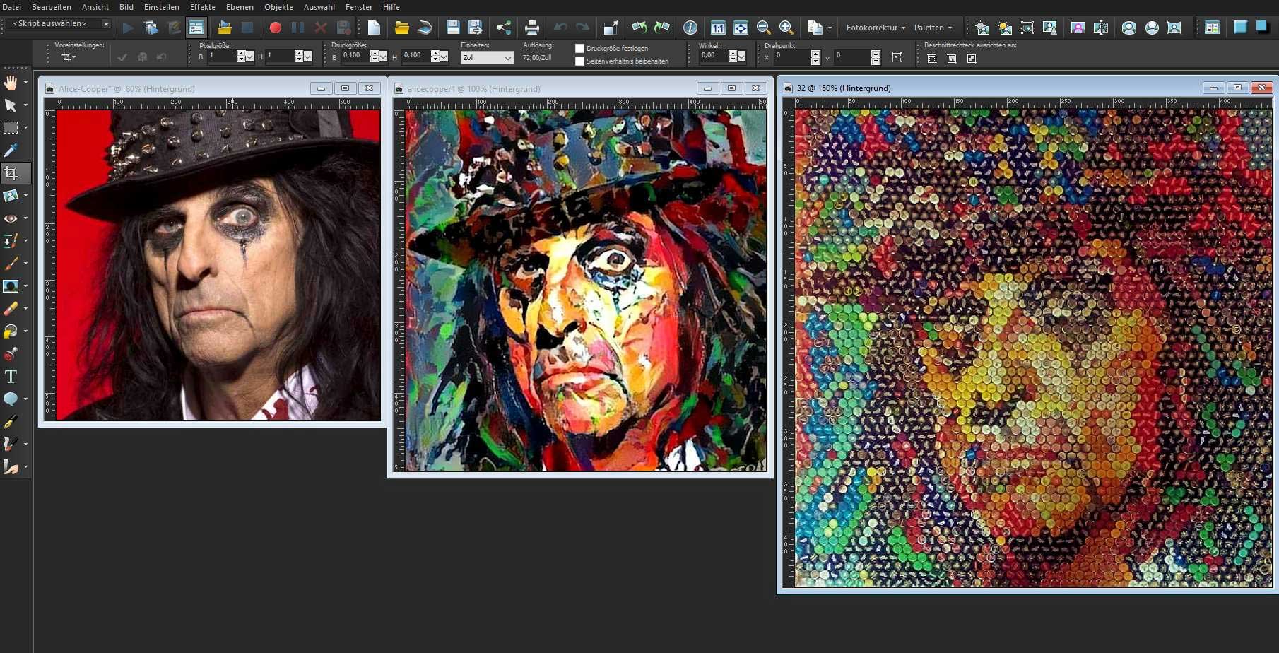 Henning Leuschner aus Köln ist da konsequenter und hat bereits etliche Portraits erstellt, die in Mosaikart mittels Kronkorken zusammengesetzt wurden. Das erinnert an die Arbeiten von Jean Marie Lambert. Sehr schön!