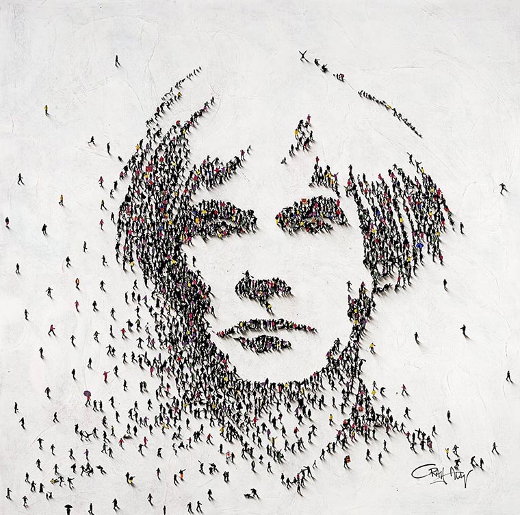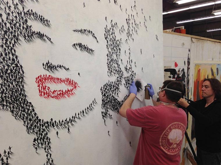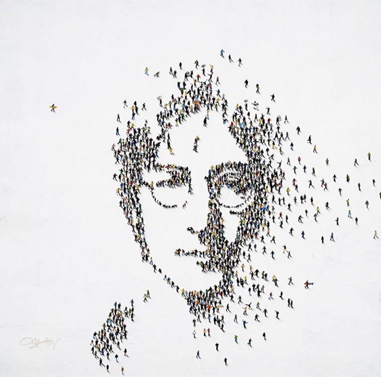 Kann sein, dass ich mal eines der Motive von Craig Alan in einer früheren Bilderparade hatte. Aber wie dem auch sei – hier eine ganze Reihe an Bildern des Künstlers aus Amerika. Mittels gekonntem Farbdosen-Sprüheinsatz zaubert er Menschenmassen herbei, die scheinbar unwissentlich perfekt auf einem Platz angeordnet sind, um aus der luftigen Höhe das Gesicht eines Stars darzustellen. Menschliche Pixel sind immer wieder toll (auch wenn hier künstlich inszeniert).