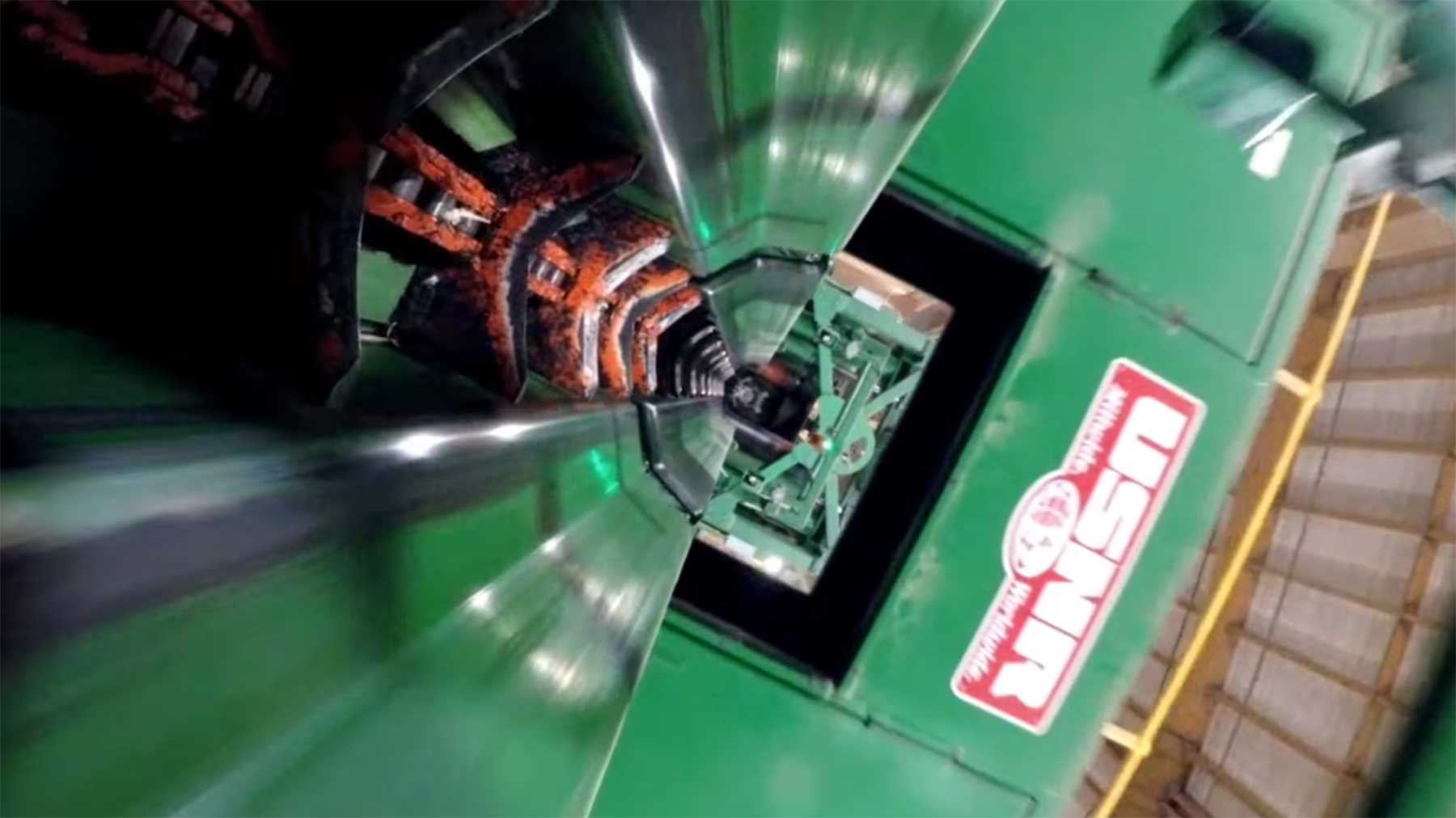 Wer schon immer mal wissen wollte, wie sich so ein Baumstamm bei der Fahrt durch das Sägewerk fühlt, sollte hier genau hinschauen. Das hat schon etwas von einem Horrorfilm, wenn man bedenkt, dass das Stück Holz von Fahrsequenz zu Fahrsequenz kleiner geschnitten werden dürfte. Das Nahen des unaufhörlich surrenden Sägeblattes – Bond-Bösewicht-Material!