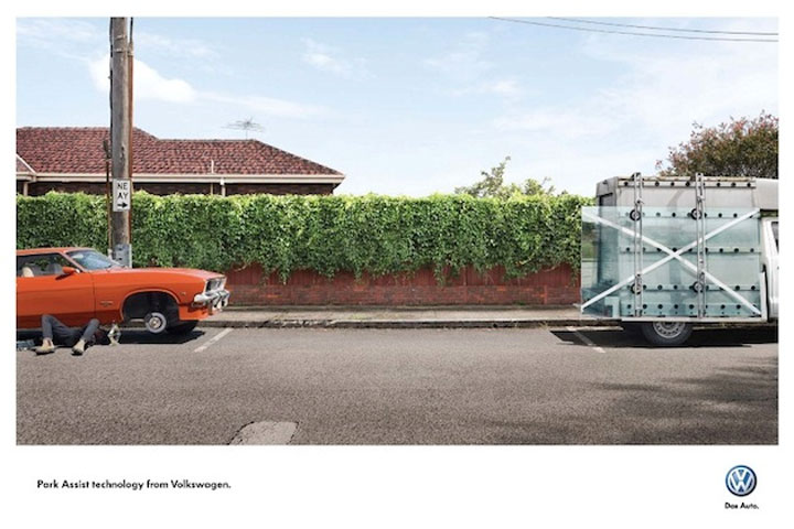Schöne Print-Kampagne von DDB Sydney für Volkswagen. Eigentlich ist es so simpel für etwas zu werben: Finde den Mehrwehrt eines Produktes und stelle das damit zu lösende Probleme überspitzt dar. Fertig ist die Printlaube. In diesem Fall für die automatische Einparkhilfe. Wobei es dann doch nicht an einen der besten Spots der Neuzeit ran kommt, der eben auch den Parkassistenten gerühmt hat. Hach…