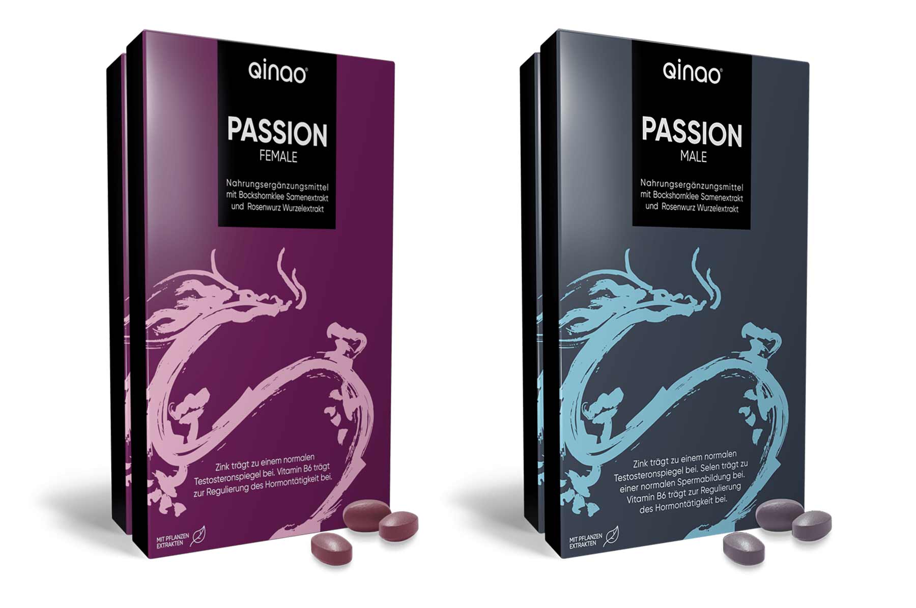 Vor allem hilft das dabei, das Medien-gesteuerte und aufgehübscht vermittelte Bild aufzuweichen, dass alle anderen Menschen auf der Welt wie gut geölte Sex-Maschinen funktionieren. Nein, dem ist natürlich nicht so! Etliche Leute haben mal mehr und mal weniger mit der Lust zu kämpfen. Sei es aus trivialen oder tieferliegenden Problemen. Qinao® PASSION will als „Lust-Upgrade“ fungieren und beim „Loslassen, Fallenlassen und Genießen“ unterstützen. Ihr merkt, das ist kein Viagra 2.0, sondern eine weitaus weichere Steuerung, die unterstützen soll. Dabei gibt es gleich zwei Ausführungen: PASSION MALE und PASSION FEMALE.
