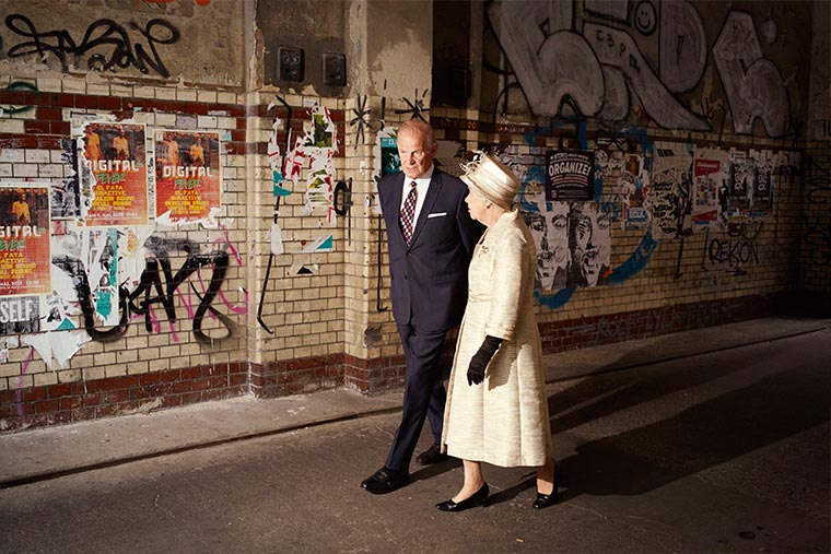 Doch was wäre, wenn die Königin schlechthin einfach die Berliner U-Bahn nimmt, Sich eine ordentliche Currywurst rein haut und dann privat bei Leuten im Gästezimmer unter kommt? Das ist doch eh günstiger. Und cooler. So hat es sich zumindest Airbnb gedacht und einfach mal zwei Doppelgänger zum Fotoshooting in die Hauptstadt geschickt.