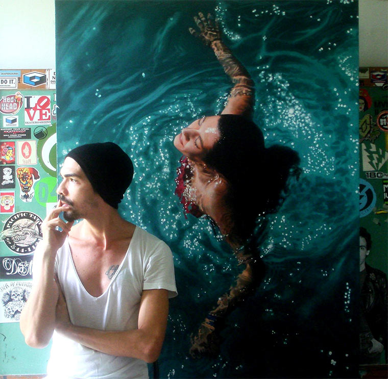 Die realitätsnahe Darstellung von Wasser ist immer wieder eine Herausforderung. Gustavo Silva Nunez hat diese zu seiner Spezialität gemacht und zeigt uns eindrucksvoll, dass er schwimmende, tauchende und im Wasser treibende Menschen in ungemein natürlicher Form darstellen kann. Dazu präsentiert er seine Werke stets in locker-cooler Haltung. Gefällt mir sehr!