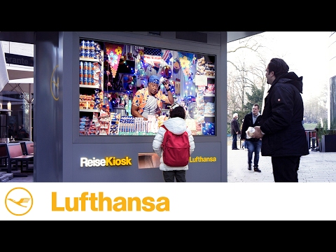 „Im Nu woanders sein und das Fernweh vergessen. Der Lufthansa ReiseKiosk macht’s möglich. Denn egal, ob Sie sich hier eine Limo mit Wasabi oder Bonbons mit Pancake-Geschmack gönnen: Alles enthält Spuren von Fernweh und bringt Sie für einen kurzen Moment an Ihr Traumziel.“
