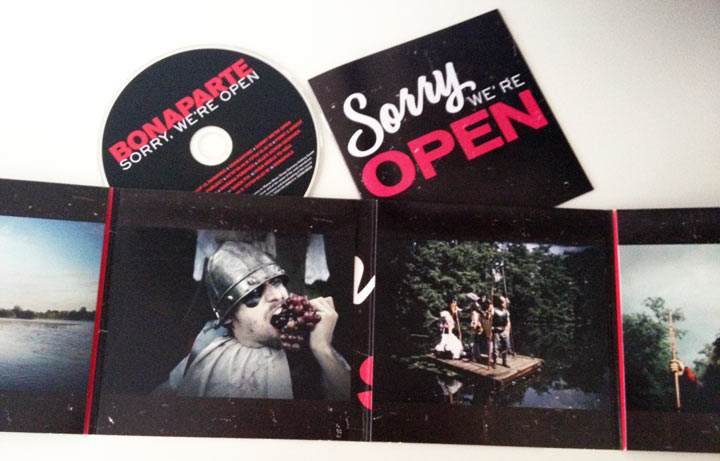Und da bietet Sorry We’re Open leider nicht ganz das Kult-Potenzial, was die beiden Vorgänger auf Lager hatten. Aber im Einzelnen: Der Beginn ist epochal. Bereits beim Hurricane haben sie When The Ship Is Thinking als „Einmarschmusik“ genutzt. Ein dröhnender Bass, Akkordeantöne sowie eine robotische Stimme – eine absolut zu Bonaparte passende Mischung. Darauf folgt auch schon die Vorabsingle Quarantine. Ein verstimmtes Riff und ein Dance-Beat leiten den musikalischen Teil der Platte ein. Auch wenn der Track zunächst etwas sperrig erscheint, dürfte es durchaus groß werden, wenn tausende Kehlen „This ship is in quarantine!“ gröhlen.