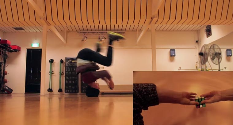 Justin Stomp kommt aus den Niederlanden und kann mit seinen gerademal 15 Jahren bereits zwei Dinge, die ich mit 28 noch nicht kann: Breakdancen und einen Rubikwürfel lösen. Doch was mir bereits nacheinander ausgeführt enorme Probleme bereiten würde, macht Justin einfach mal gleichzeitig. Das zum Thema immer schneller werdende Gesellschaft… Krass!
