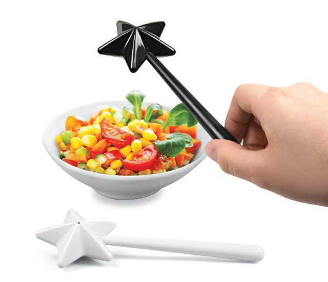 OMG, das ist sowas von kitschig, übertrieben süß, hirnrissig, überflüssig und kindisch, dass es eigentlich schon wieder cool ist! Porzellan-Zauberstäbe (12$), mit denen das Essen mit Gewürzen bestäubt werden kann. Hex-hex!
