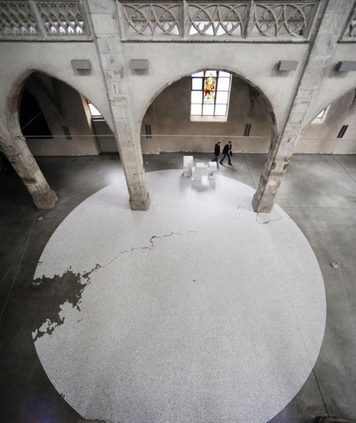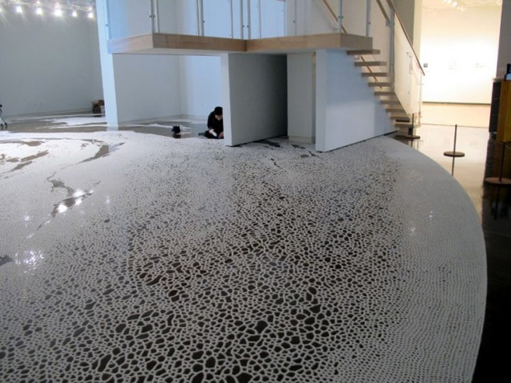 Großartige Werke des janpaanischen Künstlers Yamamoto Motoi. Der scheint so viel Langeweile zu haben, dass er mit dem kompletten Salzvorrat von Muttern kleinteilige Muster in Hallenteppichgröße bildet. Muss eine enorm geduldige Arbeit sein. Hier jedenfalls einige sehr eindrucksvolle Bilder der Arbeiten sowie eine Videodokumentation über ihn UND ein kleines Timelapse-Video zur Entstehung eines Stückes.