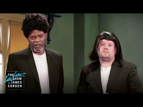 „Samuel L. Jackson and James Corden act out snippets from Samuel’s legendary film career, covering everything from ‚Pulp Fiction‘ to ‚Jurassic Park‘.“