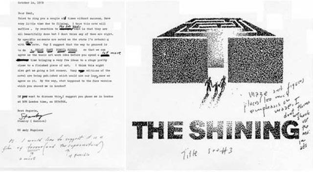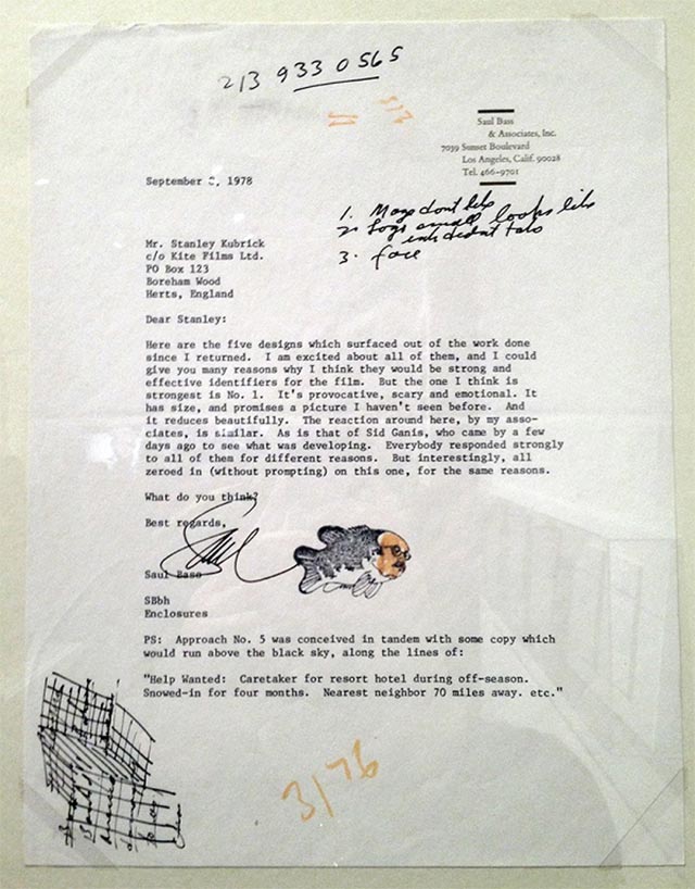 Das sind Namen: der legendäre Design-Künstler Saul Bass, der Kino-Klassiker The Shining von Stanley Kubrick – Popkultur-Geschichte im ganz oberen Schubfach. Umso interessanter sind diese Bilder, die zeigen, dass es auch bei derartigen Höhen genauso abgeht, wie bei Kunststudentin Tina, die für den Friseur um die Ecke ein neues billiges Wortspiel-Logo zeichnen soll. Es geht hin und her, der Kunde ist nie glücklich und wenn er es am Ende ist, der Künstler vermutlich nicht mehr.