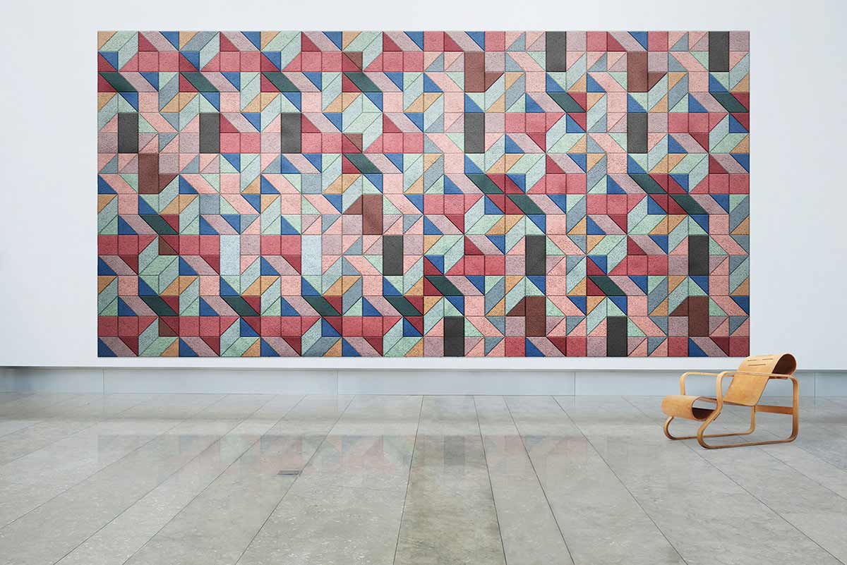Die schwedischen Design-Spezialisten von „Form Us With Love“ haben eine stylische Alternative zu Eierkartons und Wellenschaumstoffplatten entwickelt, die zur Schalldämpfung in Räumen beitragen soll und dazu eben auch noch dekorativ ausschaut UND ökologisch vorbildlich erarbeitet werden. Dabei kann man nicht nur zwischen allerlei Farben wählen, sondern auch die Formen der Kacheln individuell kombinieren. Ob Hexagon, Quadrat oder Dreieck – alles geht, mittlerweile sogar mit höhenvariablem 3D-Flächeneffekt. Schick, schick!