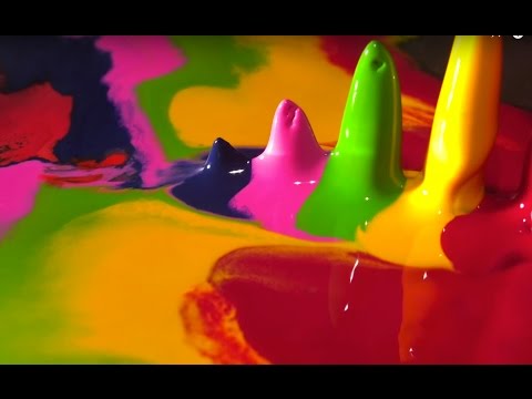 Wachs ist ja eigentlich prädestiniert zum Schmelzen. Bei Malstiften schaut das aber anders aus, die reiben sich in der Regel nur ab. Liegt wohl an der fehlenden Wärme – ergänzt man zum künstlerischen Treiben einen Gasbrenner, schmelzen die bunten Stifte dahin wie Mädchen bei Justin Bieber-Konzerten. Nur noch bunter!