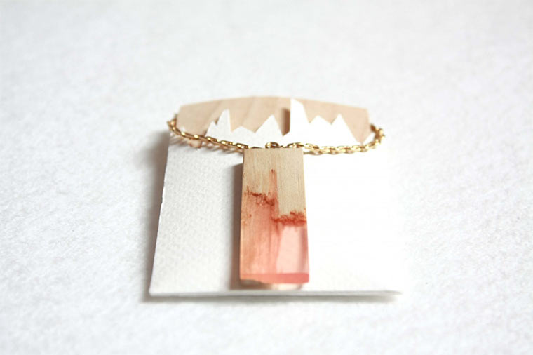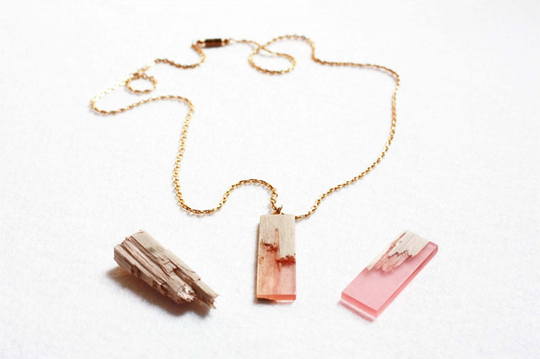Eine kreative Idee des süddeutschen Designers Marcel Dunger. Der gebürtige Chemnitzer ist breit aufgestellt und unter anderem für Produkt-, Grafik-, In- und Exteriordesign zuständig. Und plötzlich ist er auch Schmuck-Designer. Mit dieser Reihe aus zerbrochenem Ahorn-Holz und gefärbten Bioharz schafft er sehr interessante Einzelstücke, die als Anhänger genutzt werden können.