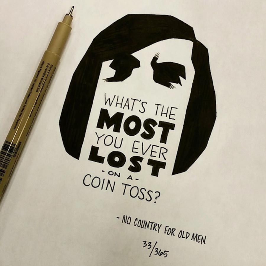 Illustrator und Designer Ian Simmons hat aus seiner Film-Leidenschaft ein unterhaltsames Jahres-Projekt gemacht. Und das hat er nicht nur abgeschlossen, nein, kürzlich ist das 366. Motiv der Reihe online gegangen. Wir können uns scheinbar über eine Fortführung der kreativ in Szene gezeichneten Film-Zitate freuen. Yippie-Ya-Yeah, Schweinebacke!