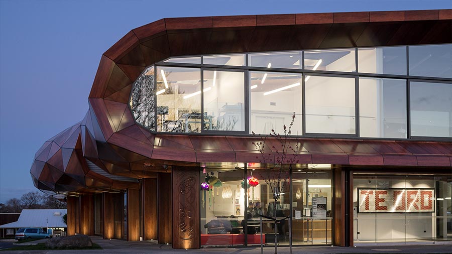 Das „Te Oro“-Gebäude in Neuseeland ist ein wahrer Hingucker. Archimedia hat das kulturelle Zentrum für Kreative gestaltet, das in edlem Holzlook und polygoner Fassade daher kommt. Junge Leute sollen für Musik und Kunst im schlauchförmigen Gebäude zusammen kommen. Interessant finde ich auch die Herkunft des Namens: