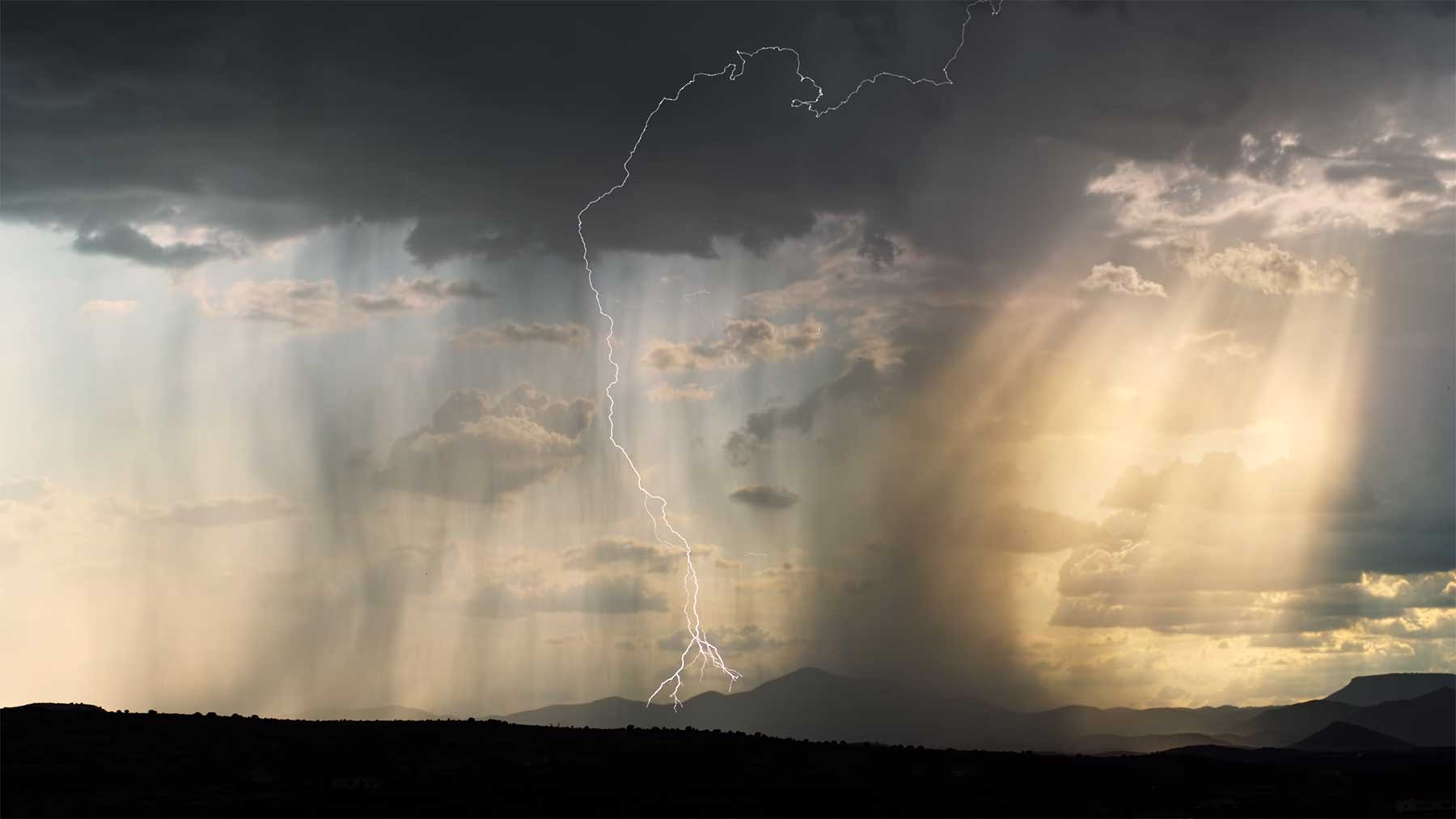 Technical info: The Phantom Flex4K is a camera that must be post triggered while shooting high speed. This works out well for capturing lightning because the camera is always recording and rewriting to internal ram. As soon as a bolt appears in my view finder I trigger the camera to save what has been stored in the ram. Shooting at high frame rates requires a lot of light. Therefore, I mostly used my Zeiss Otus 28, 55, and 85mm lenses wide open at f1.4.“