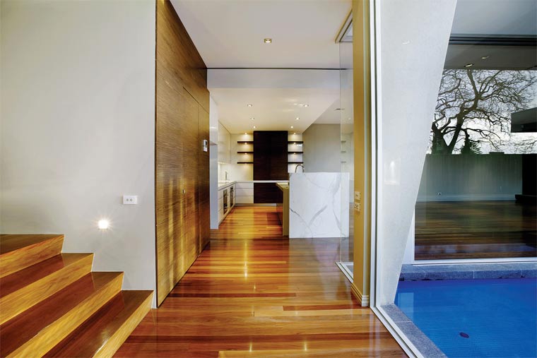 „With 4 bedrooms, 4-car basement garage, 2.5 bathrooms, cellar and 4 living areas, it encapsulates everything the clients could possibly imagine. Everything about this home is state-of-the-art, from the Jetmaster fireplace and integrated barbecue in the pool house, to the dumb waiter and $15,000 custom built glass pane from the study outlook to pool, no expense was spared in creating this perfectly tuned home.“