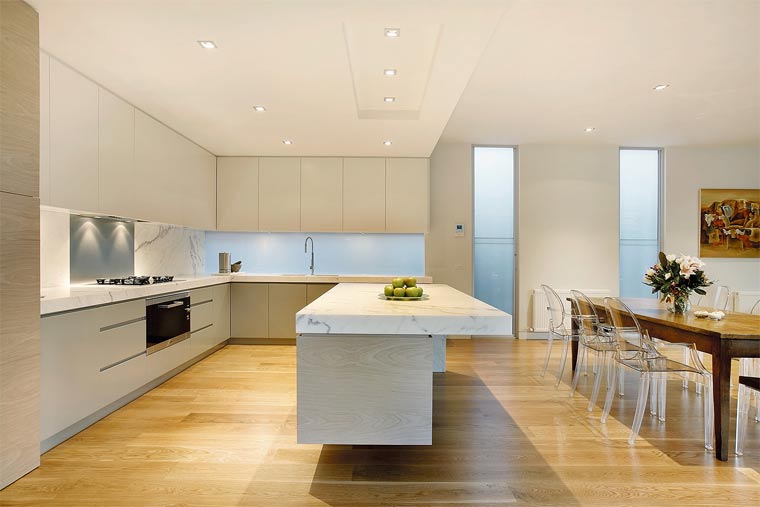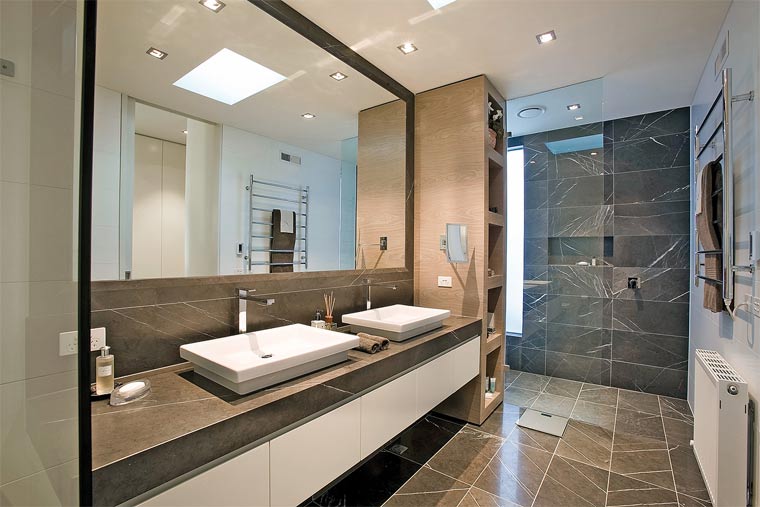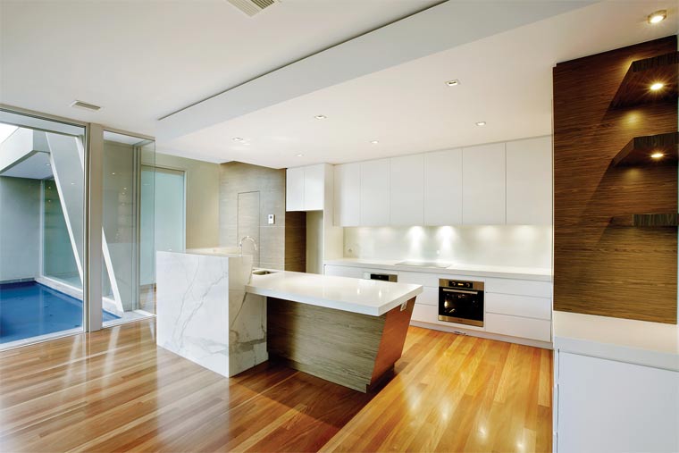 Wunderbar modern geschnittenes Gebäude vom Architekturbüro Canny. Die Canterbury Residenz trumpft mit einer scheinbar im Pool schwimmenden Sitzinsel, eigenem Weinkeller und vor allem einem durchgezogenen, kubistischen Konzept.