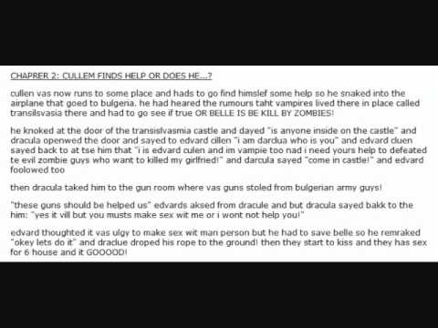 Ich bin so gar nicht in der Welt von „Twilight“ beheimatet, aber diese ganz und gar schreckliche Fan Fiction, die J.T. Sexkik hier gelesen hochgeladen hat, ist auch so unterhaltsam! Könnte auch daran liegen, dass auch wirklich jeder Rechtschreibfehler entsprechend mitgelesen wird…