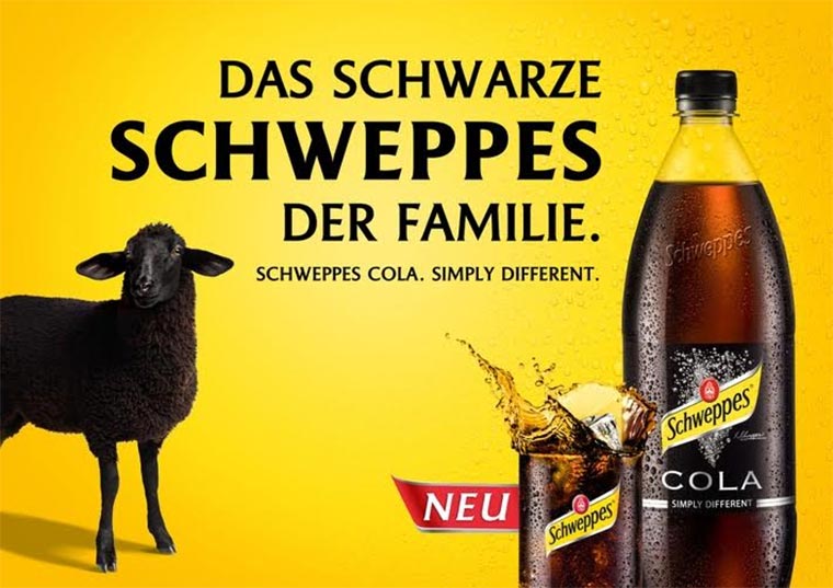 Als „schwarzes Schweppes der Familie“ wird die neue Cola aus dem Hause Schweppes beworben. Mit einem schwarzen Schaf, das sich bei Besuch der Website aufs Besucher-Auge drückt und so lange kuschelt, bis einem klar wird – da ist was neu. So richtig. Richtig? Nun ja – Cola gab es jetzt schon eine Weile und auch in durchaus mehrfacher Ausführung. Wieso nun also nach 233 Jahren Bestehens auch aus dem Hause, das eigentlich für Tonic und Ginger Ale steht? Ganz einfach: Es ist „simply different“. So der Produkt-Claim.