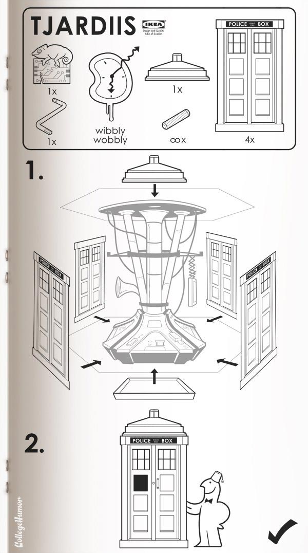 Sehr schöne Idee von CollegeHumor, die dem Back To The Future DeLorean, Star Wars-Lichtschwert und anderen Sci-Fi-Dinen eine schicke IKEA-Bauanleitung verpassen. Mit pseudo-schwedischen Namen inklusive!