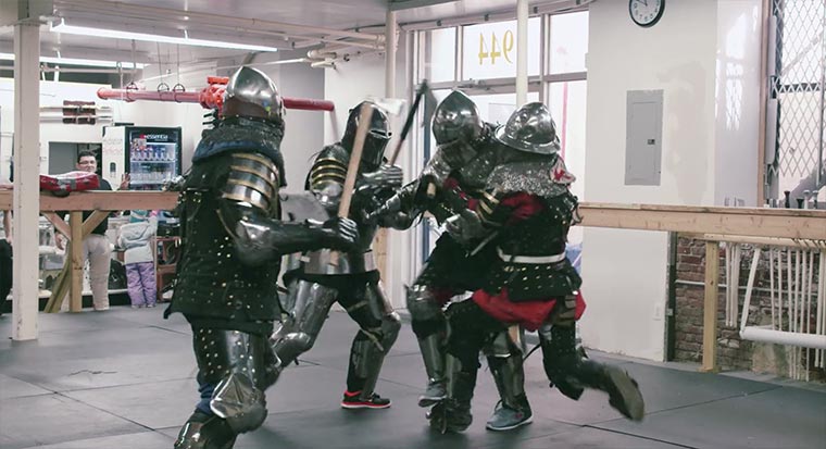 Damion DiGrazia hat in Harvard und an der Columbia studiert und war Unternehmenesberater und arbeitet für eine Investment-Bank in Manhattan. Ach, und zum Ausgleich geht er in auf Leute mit einer Axt los. In Ritterrüstung. Ein Hau-Drauf-Spiel, das eher an Ringen und UFC als das klassische und edle Rittergehabe erinnert, das uns in Film und Fernsehen vorgegaukelt wird. Skurriles Hobby.