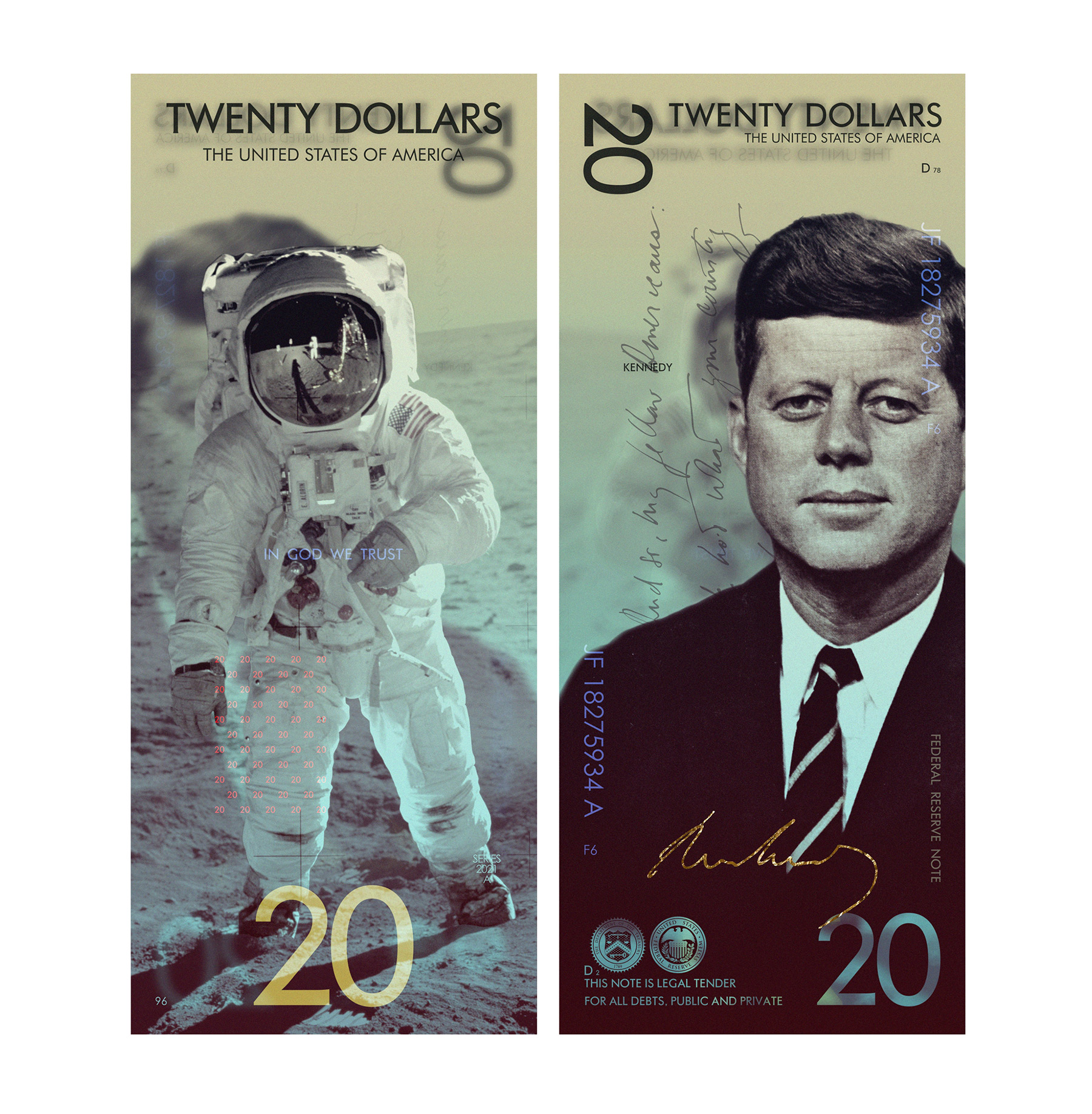 Mal ganz davon abgesehen, dass das für den US-Dollar ikonische Grün mehr oder weniger komplett verschwinden würde, ist die Umdesignung wohl insgesamt etliche Schritte zu krass ausgefallen, als dass es in naher Zukunft zu so einer Währung kommen könnte. Aber aus Design-Sicht ist das schon wirklich klasse gemacht. Und besseres Geld, das einen Waschmaschinengang überlebt oder gar Vinyls abspielen kann, sollte es dann doch irgendwann mal weltweit geben…