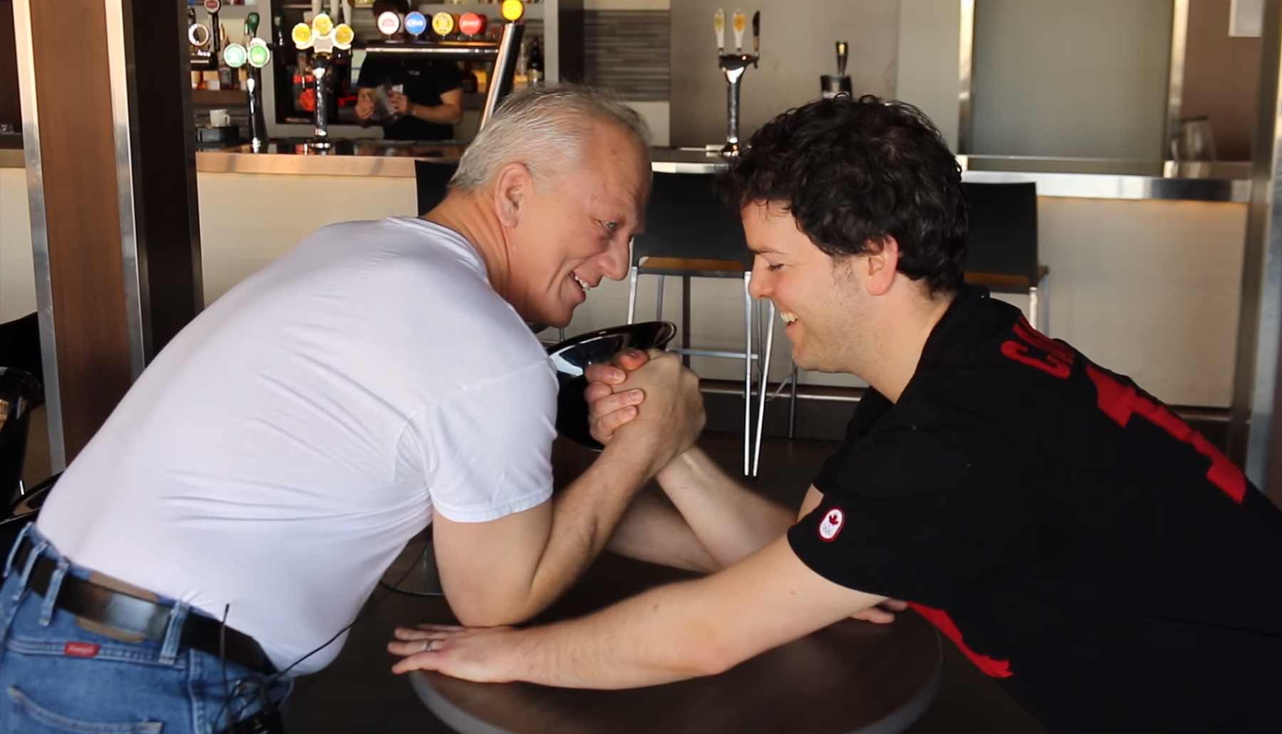 David Gunderson ist nicht nur Matheprofessor und somit in der theoretischen Lage, euch nützliche Tipps für das nächste Armdrück-Match zu liefern, sondern war auch professioneller Wettkampf-Drücker. Okay, viele seiner Tipps sind eher kleine Mogelübungen, aber alleine schon zu wissen, was welchen Vorteil bringt, kann letztlich helfen. Und bin nur ich das, oder könnte Gunderson auch der Vater von Daniel Craig sein?