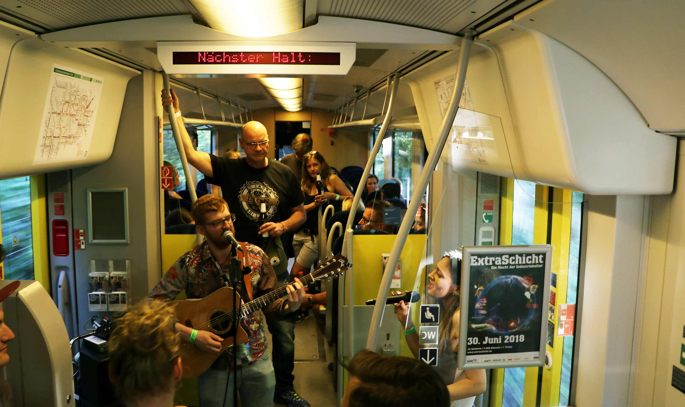 Eines meiner Highlights war die Fahrt nach Oberhausen. Nicht etwa, weil die Bahn leerer und die Strecke wunderhübsch war, sondern weil Programm geboten wurde. Eine der über 500 an diesem Abend im ganzen Ruhrgebiet abgehaltenen Kulturpunkte war, dass in der 12 Minuten zwischen Duisburg und Oberhausen hin und her fahrenden Regionalbahn Musik gespielt wurde. Klasse Idee! Ähnliches wurde mit Comedy und Poesie auch in vereinzelten U-Bahn-Linien, z.B. in Bochum, gemacht. Solche Programmpunkte sollte man unbedingt ausbauen, denn gerade die Bahnfahrten oder auch das Warten an den Bahnhöfen kostet viel Zeit, vor allem, wenn man interstädtisch unterwegs ist.