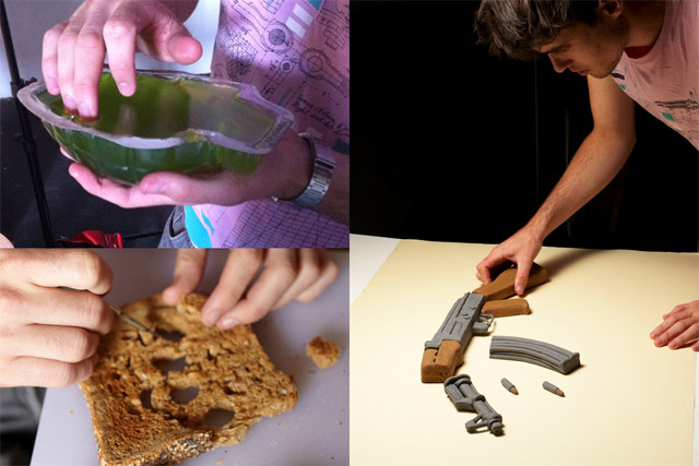 UK-Artist Kyle Bean hat für das CUT Magazine mit der Reihe Soft Guerilla einige wunderbare Konstrukte gebildet, bei denen uns die wohl harmlosesten Waffen der Menschheitsgeschichte geboten werden. Bean kennen wir übrigens schon von bspw. den kongenialen Anpitzreste-Portraits. Sehr kreativ, der Mann!
