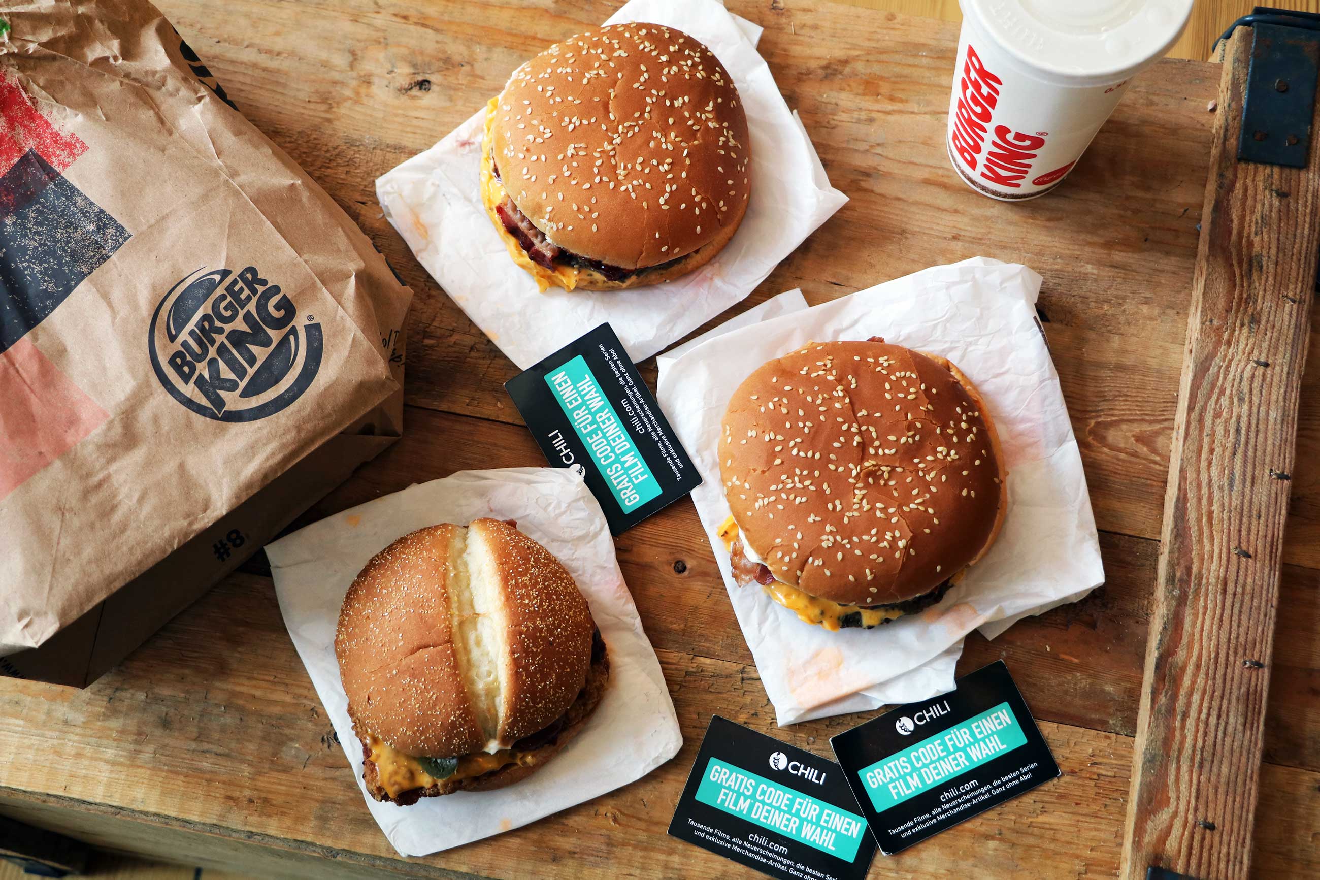 „Besonders scharf wird es dieses Mal mit unseren zwei neuen Burgern – dem Spicy Bacon KING und dem Spicy Chicken Bacon KING mit knusprigem Bacon und feurigen Jalapeños. Ist das scharf genug? Nein, noch nicht! Denn mit jedem Kauf eines Bacon KINGs bekommst Du einen Gutschein für CHILI.COM dazu: Tausende Filme, alle Neuerscheinungen, die besten Serien und vieles mehr. Na, scharf auf einen gratis Code für einen Film? Nichts wie los – nur solange der Vorrat reicht und nur bei BURGER KING.“