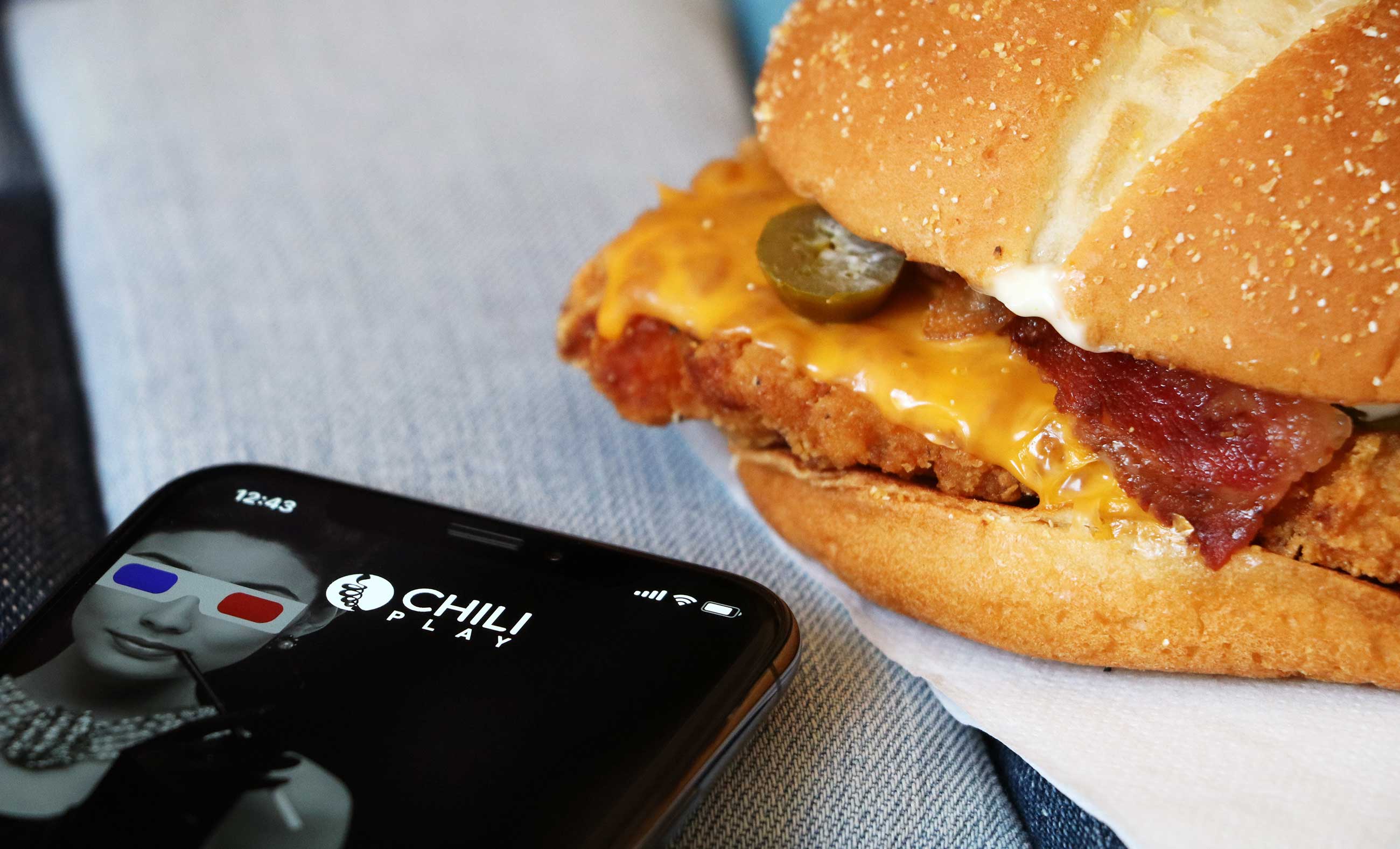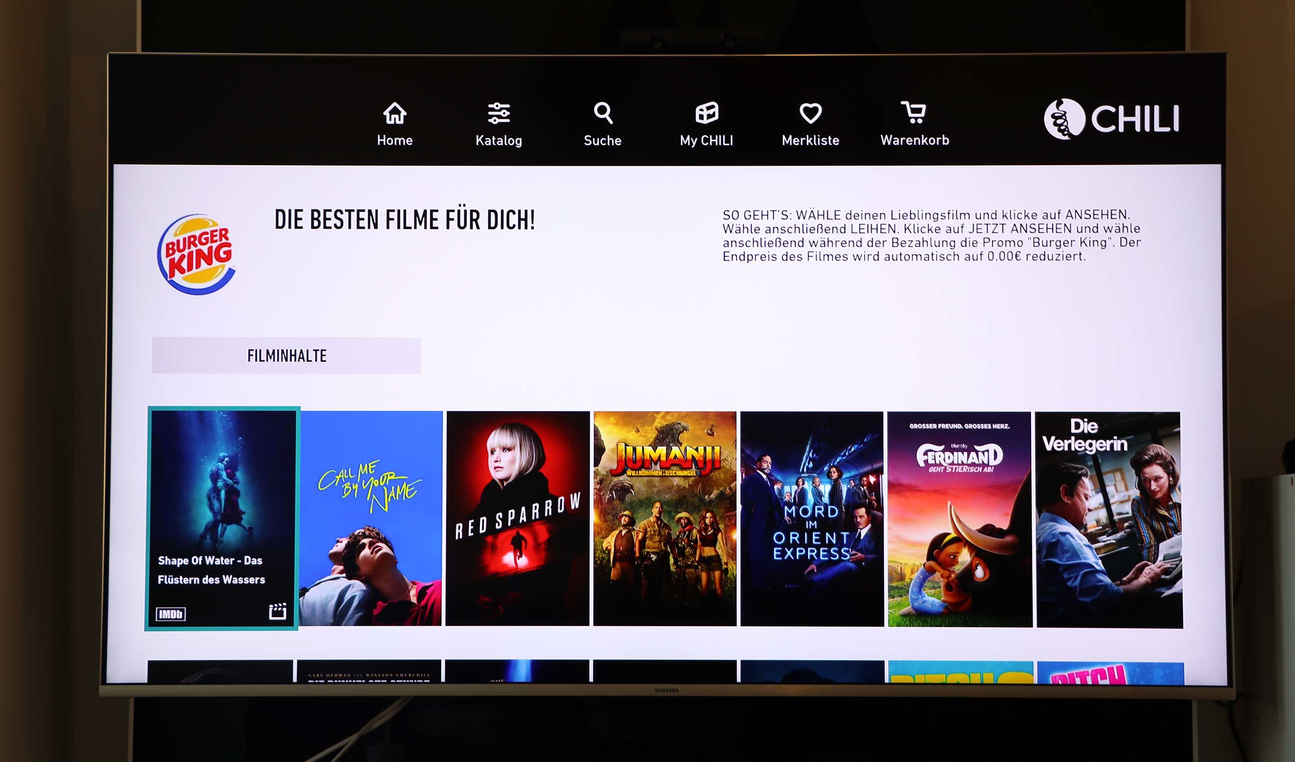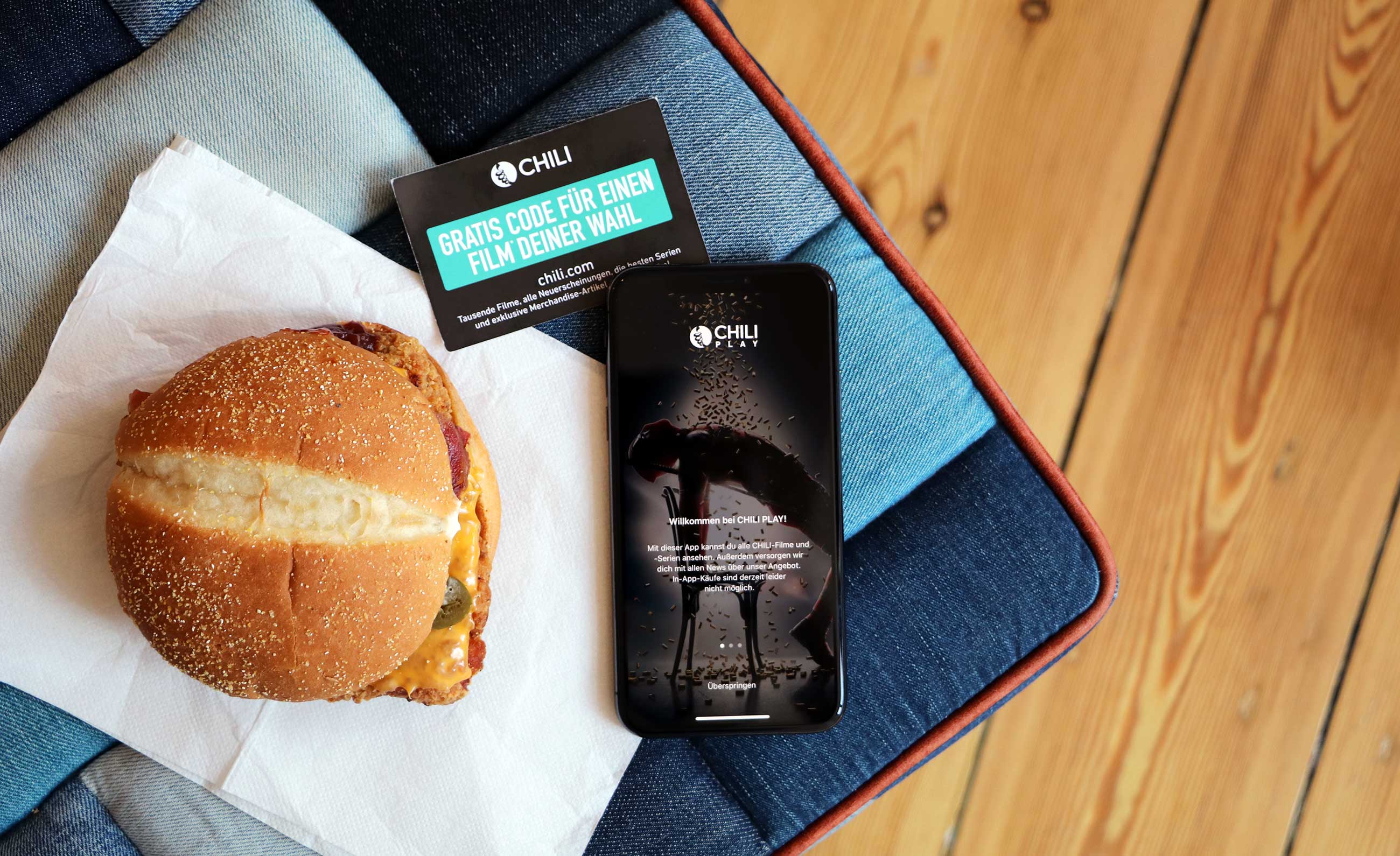 Kommen wir zum Unterhaltungsprogramm. Zu jedem der drei Aktionsburger habe ich eine Aktionskarte erhalten, auf denen jeweils ein Code für den Streaming-Anbieter CHILI steht. Einfach per Website oder Smart TV anmelden (oder binnen weniger Minuten schnell registrieren) und los geht es. Das Besondere bei CHILI ist, dass man kein Abo abschließt, das ist im Grunde genommen eine Art Video-on-Demand-Videothek mit neuen Kinofilmen und Serien-Episoden.
