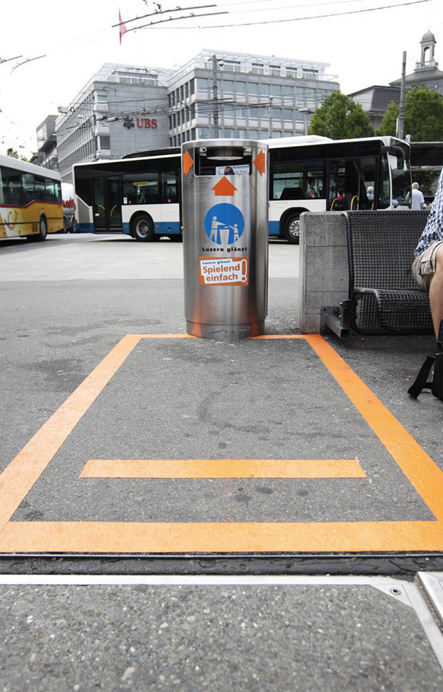 Hier in Hamburg haben wir die knallroten Mülleimer mit mal mehr mal weniger lustig-kreativen Wortspielen, die zur Abfallentsorgung aufrufen. Die Stadt Luzern geht die Sauberkeit noch spielerischer an und verpackt in ihrer Aktion Luzern glänzt – spielend einfach die Mülleimer in einige Spiele für die Passanten. Quasi ein Street Art-Stadtentwicklung-Öko-Mashup. Oder so. Jedenfalls mit einigen interessanten (wenn auch nicht unbedingt neuen) Ideen, die zwar auf den ersten Blick die Müllbeseitung erschweren, letztlich aber immerhin Spaß bringen dürften.