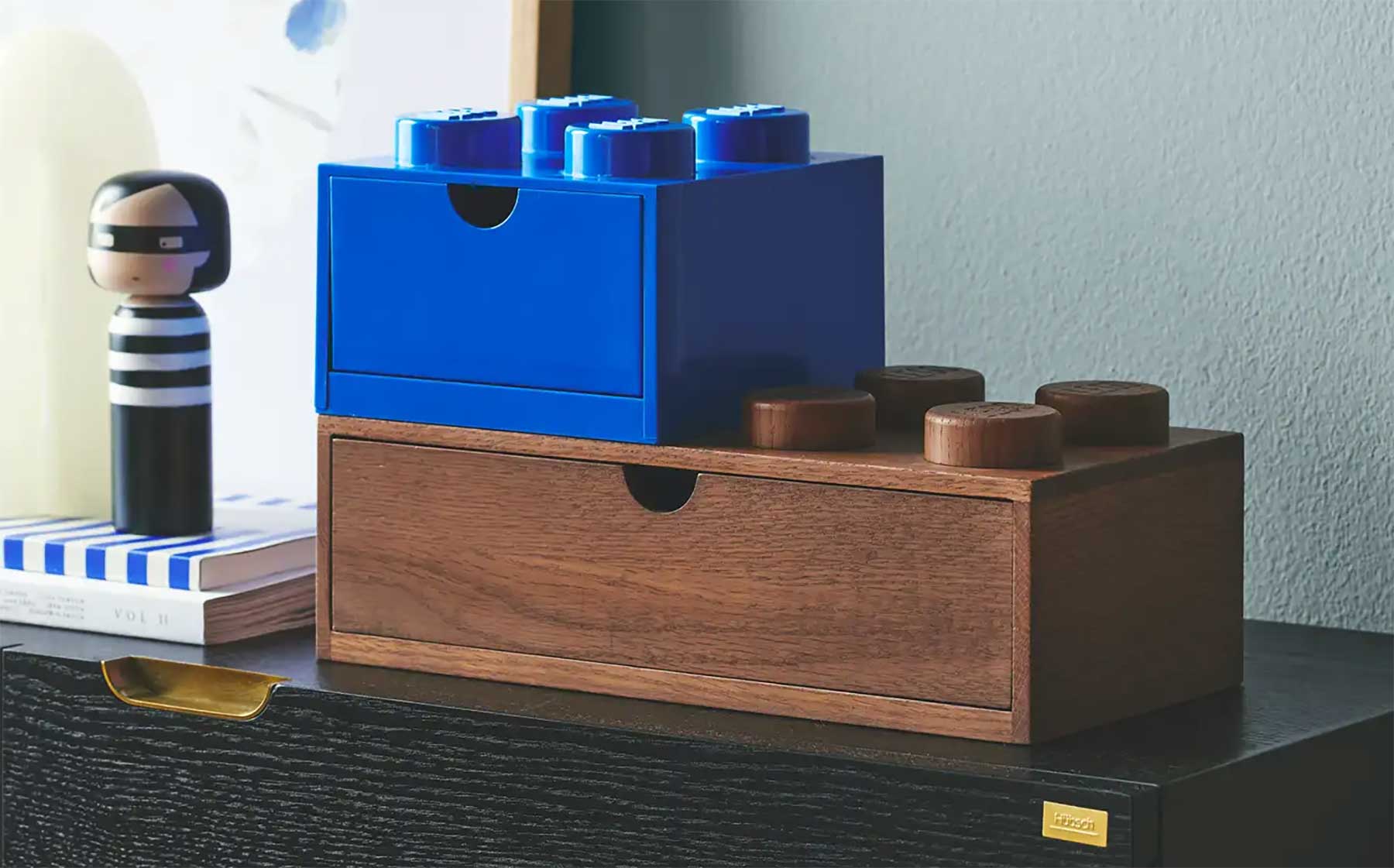 Ich hatte mal eine Brotdose im Design eines LEGO-Steines, die aber einem Verleih-Unglück zum Opfer gefallen ist. Habe die aber sehr gemocht. Mit Freude durfte ich gerade feststellen, dass es noch viel mehr Produkte dieser Block-Optik zu kaufen sind! Teilweise wirken die zwar etwas klobig, da recht groß geraten, aber einige schauen dann doch elegant aus. Vor allem die Holz-Varianten, die eine deutlich schickere Ausstrahlung haben als die Plastik-Pendants (vor allem in dunklerer Eiche!). Auch die lassen sich stapeln und bieten eine schöne Möglichkeit, verspielt und doch edel für Stauraum und Ordnung auf dem Schreibtisch oder im Regal zu sorgen. Und: Die haben teilweise Schubladen, so dass man sie nicht mittels Deckel öffnen muss! Sogar Doppel-Schubladen bei breiten 8er-Blöcken gibt es als Option. Schöne Idee für ein modulares Ordnungssystem.