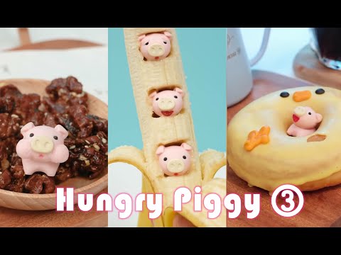 Wie süß ist das denn bitte? Also, nicht nur das, was da teilweise als Süßspeisen auf dem Teller liegt, sondern das kleine Schweinchen, das sich in Stopmotion-Manier und mit stark überdrehtem Soundtrack durch die Mahlzeiten futtert. Omnomnom!